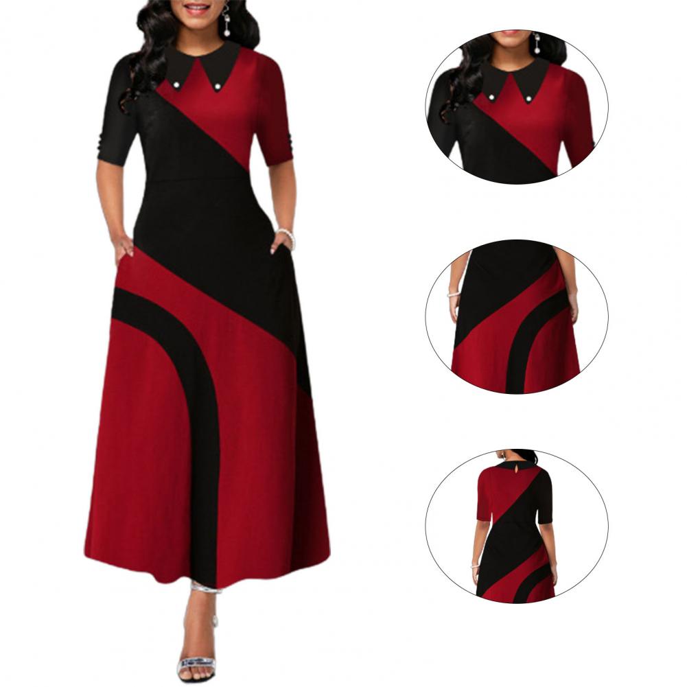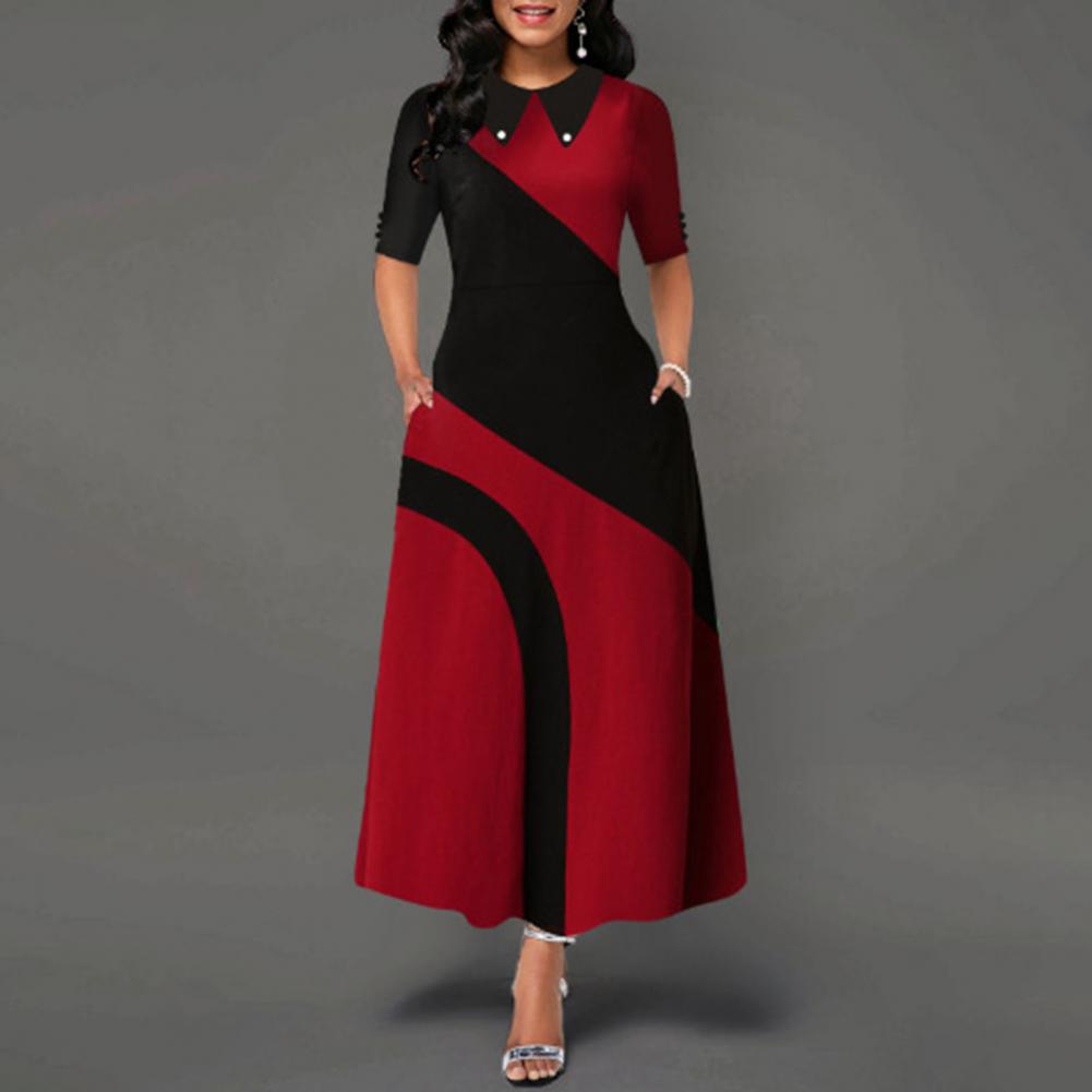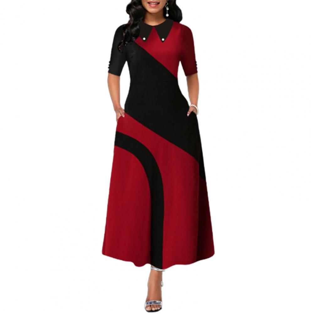 Женское платье макси с отложным воротником и боковыми карманами в стиле ретро, с большим подолом, контрастный цвет, с рукавом до локтя, женская одежда