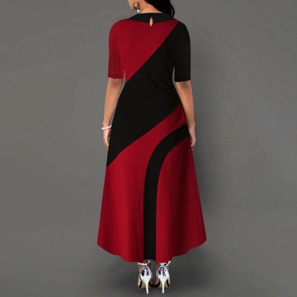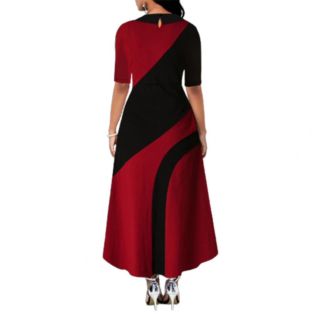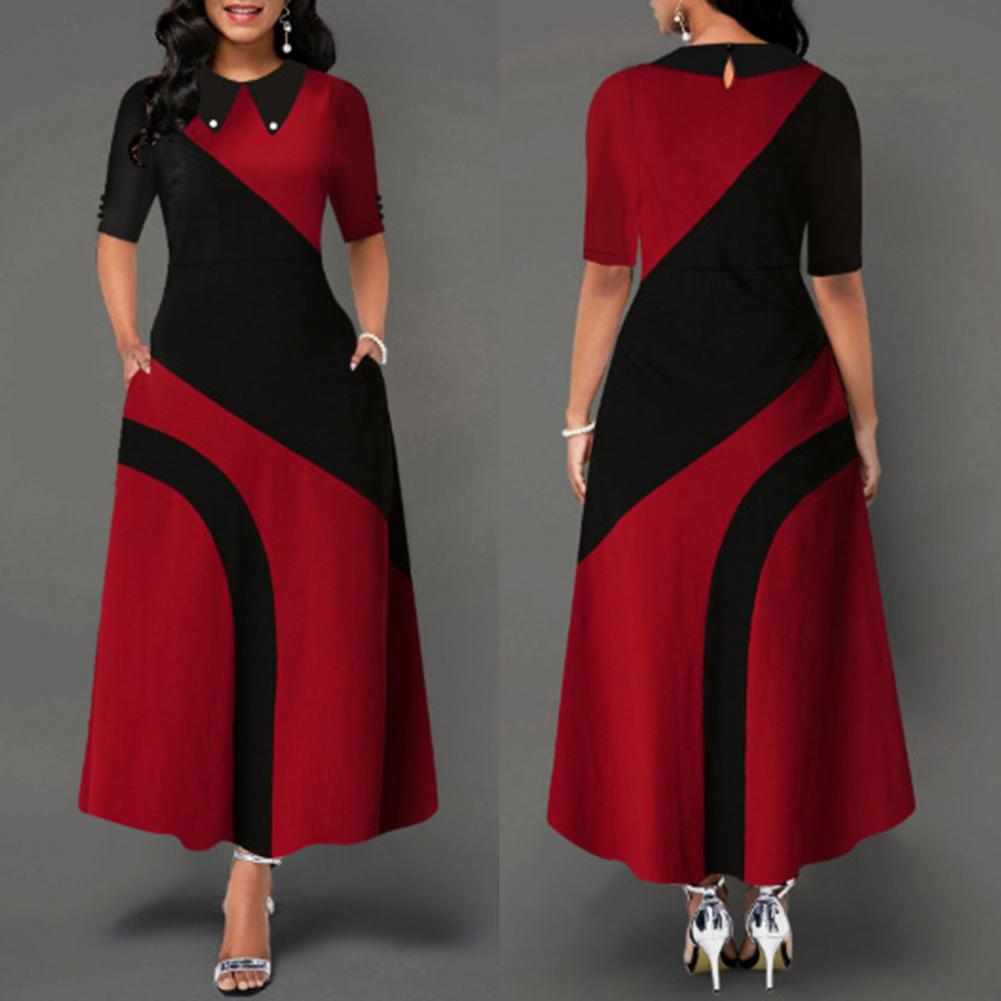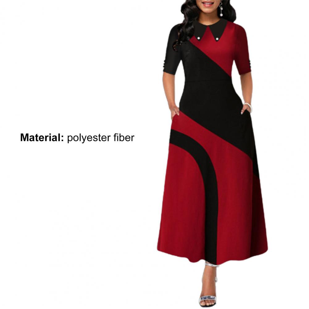 Женское платье макси с отложным воротником и боковыми карманами в стиле ретро, с большим подолом, контрастный цвет, с рукавом до локтя, женская одежда
