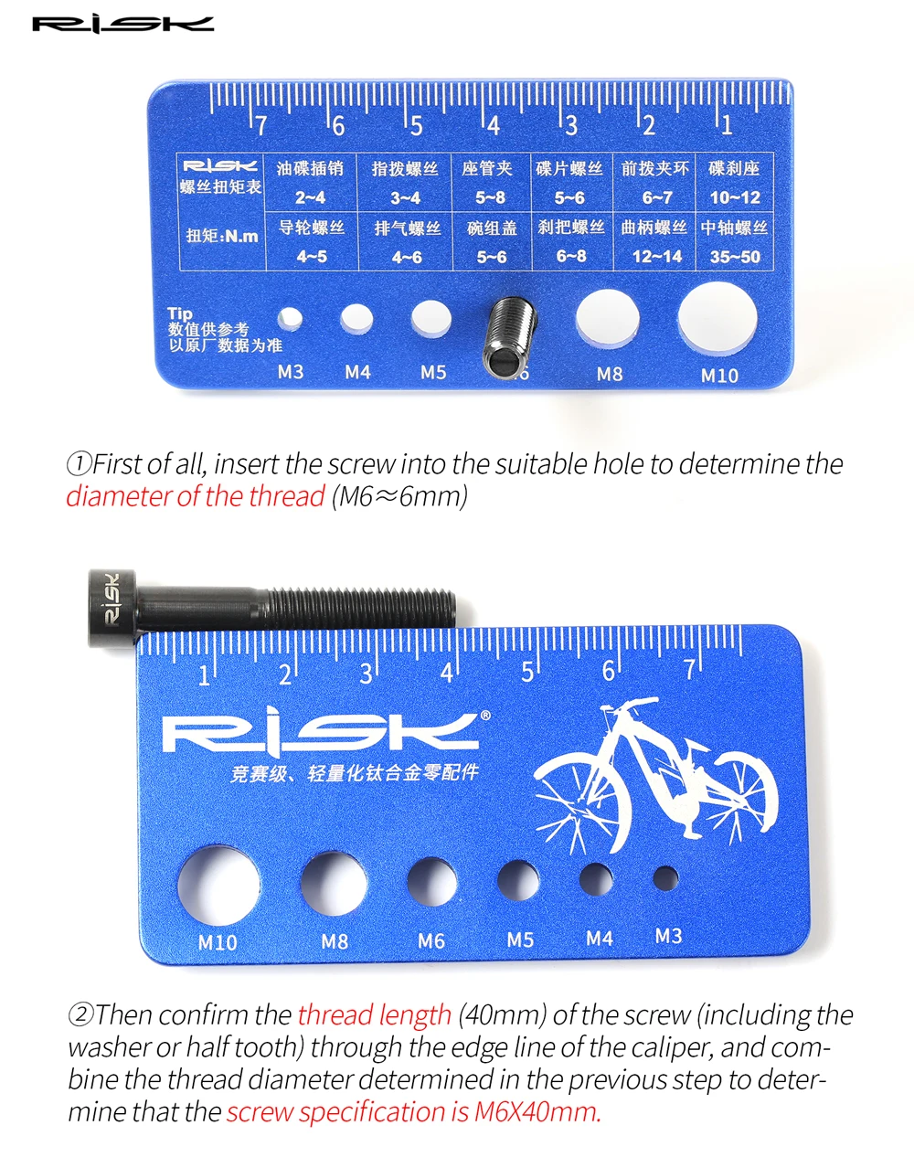 ①First, вставьте винт в подходящей отверстие для того, чтобы определить диаметр резьбы (M6 ≈ 6 мм)