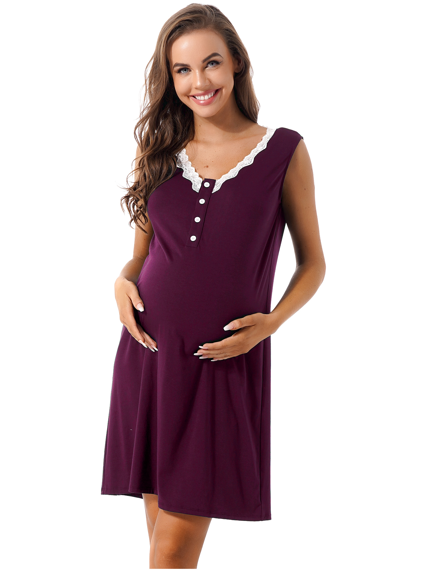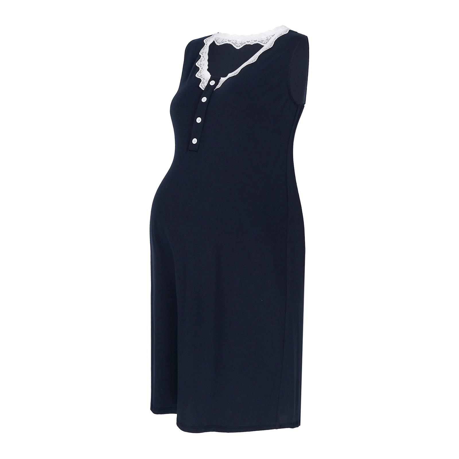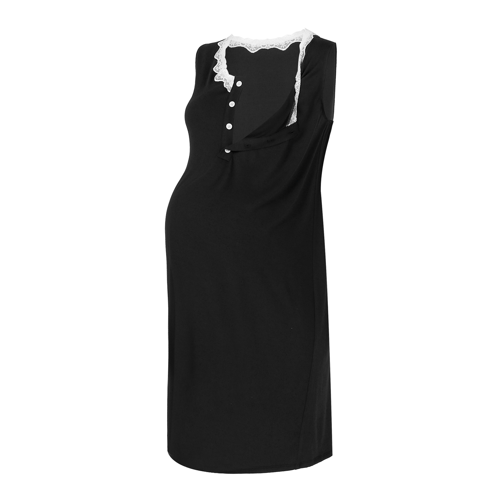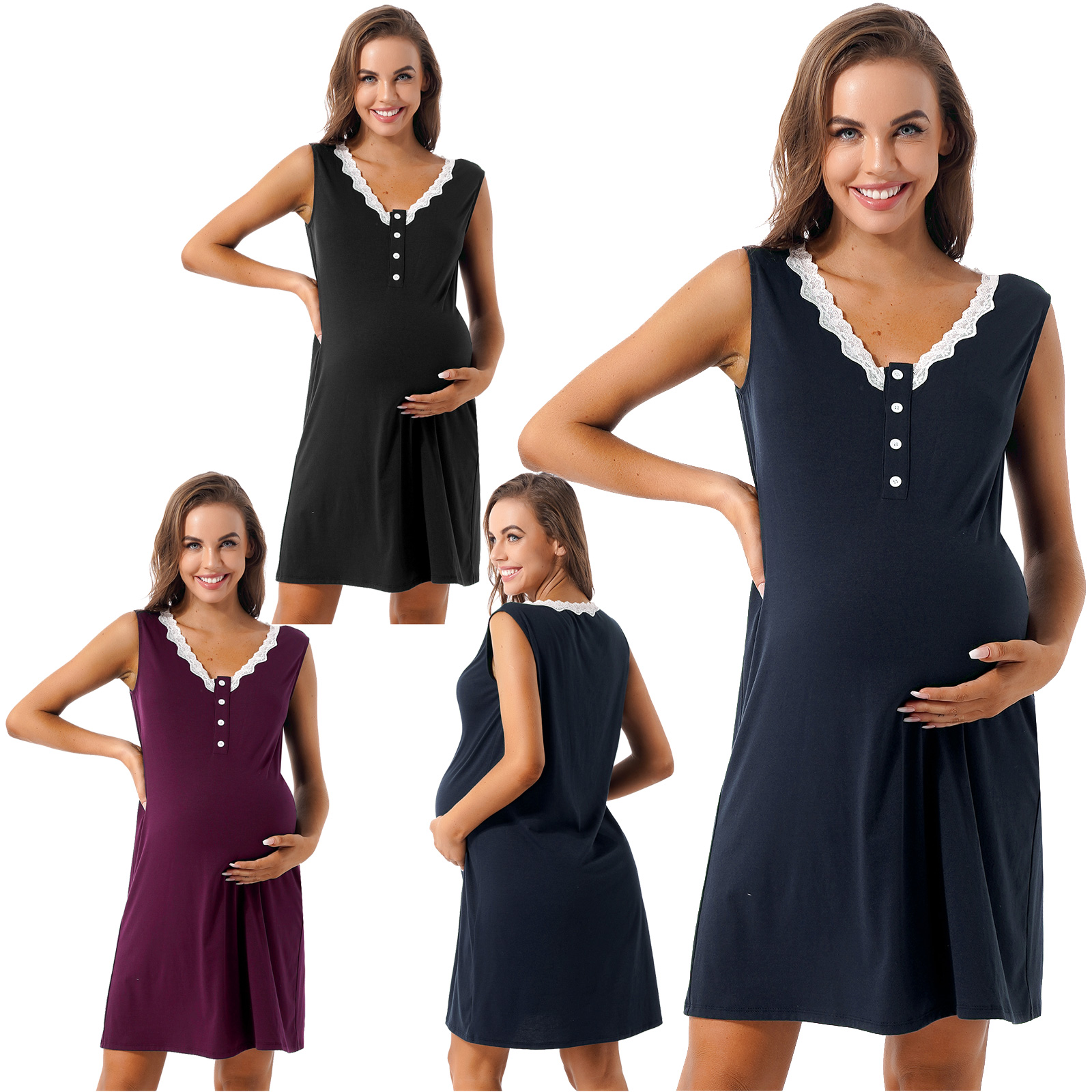 Платье для сна для беременных женщин без рукавов с кружевной оборкой и вырезом на пуговицах спереди, повседневное свободное однотонное платье для сна.