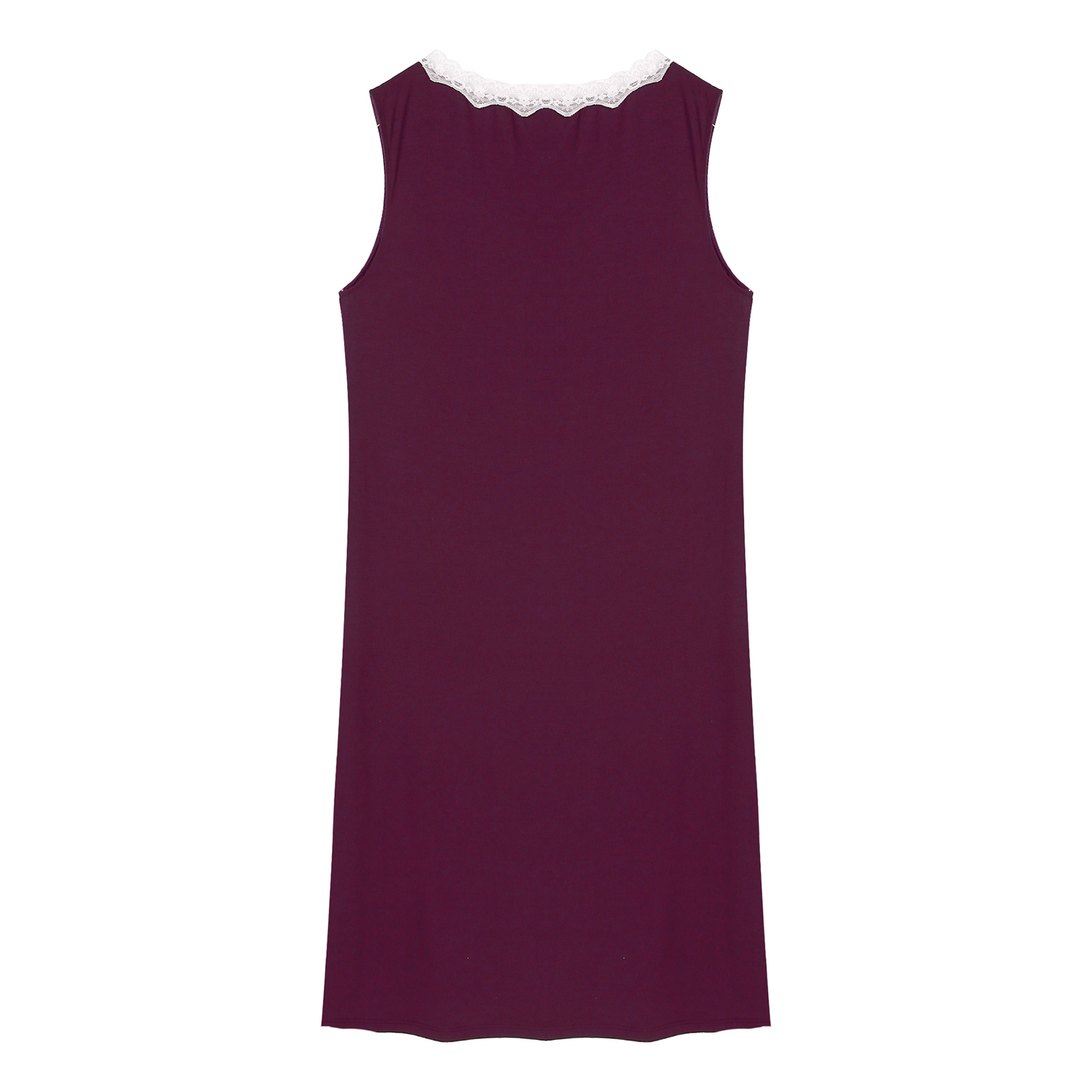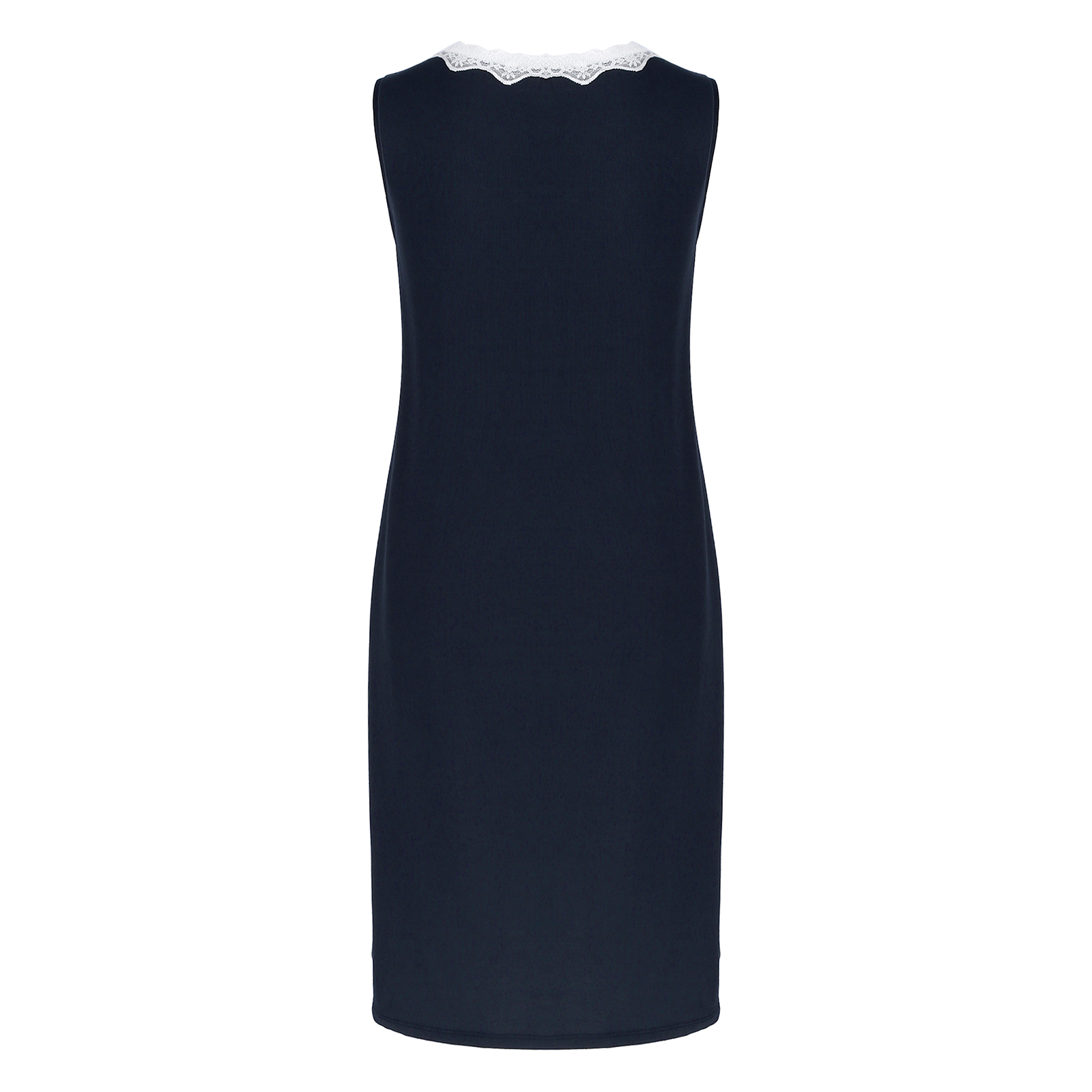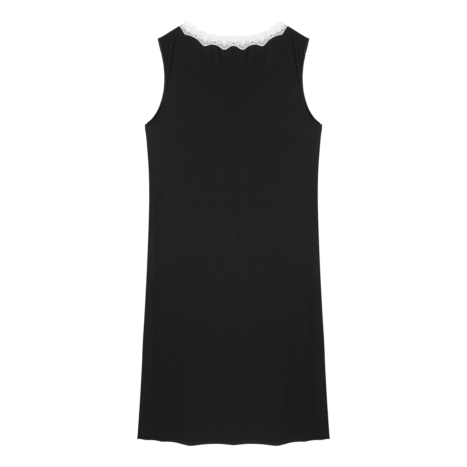 Платье без рукавов, кружевной воротник с оборками, застежка на пуговицах спереди, простой однотонный дизайн.