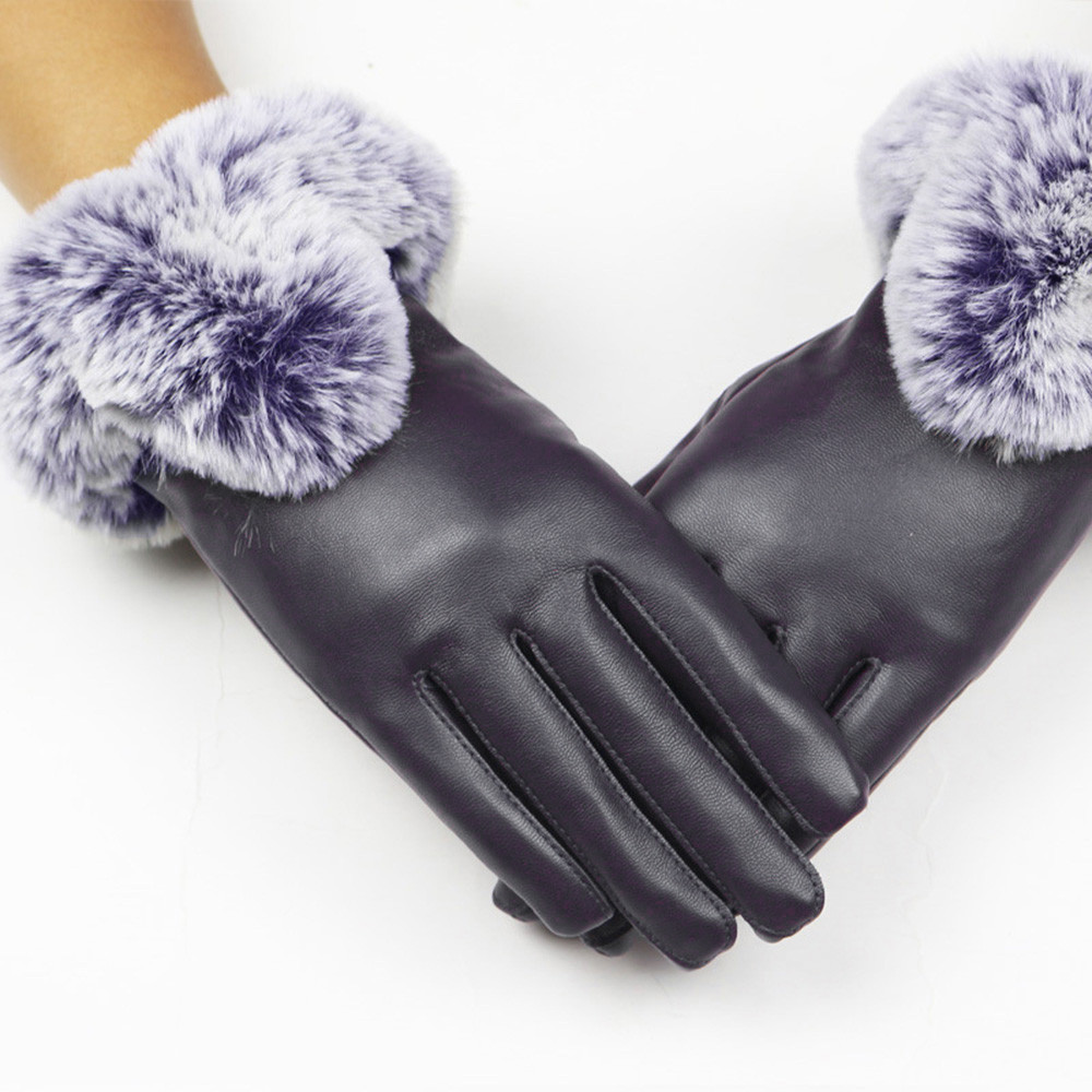 1Женские кожаные перчатки осень ВинтТеплые варежки из кроличьего меха