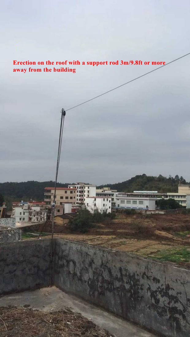 Концевая антенна имеет низкие требования к эрекции, и она может нормально работать, если она находится более 2 м/6,6 футов от земли. Чтобы достичь желаемого эффекта, он должен быть максимально высоким и максимально открытым. Когда антенна устанавливается вертикально, связь