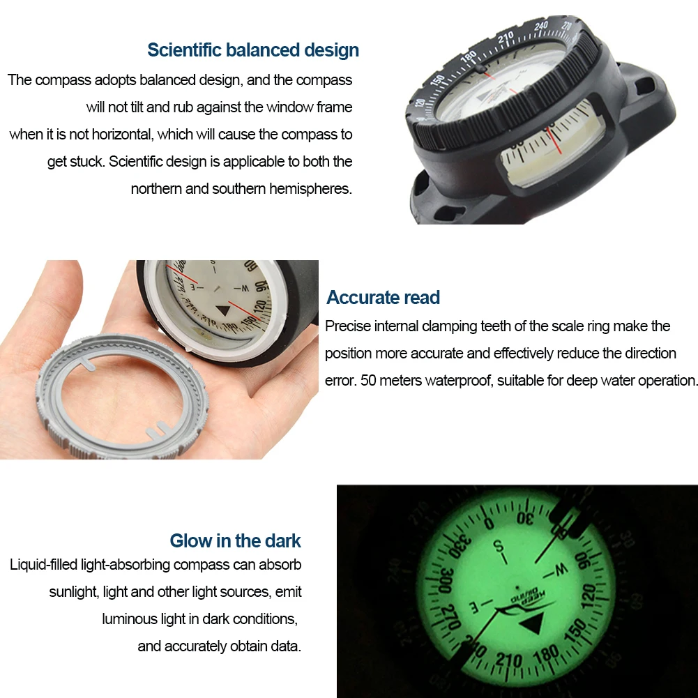 * 5. Водонепроницаемость: 50 метров, он является профессиональным Компас для дайвинга.