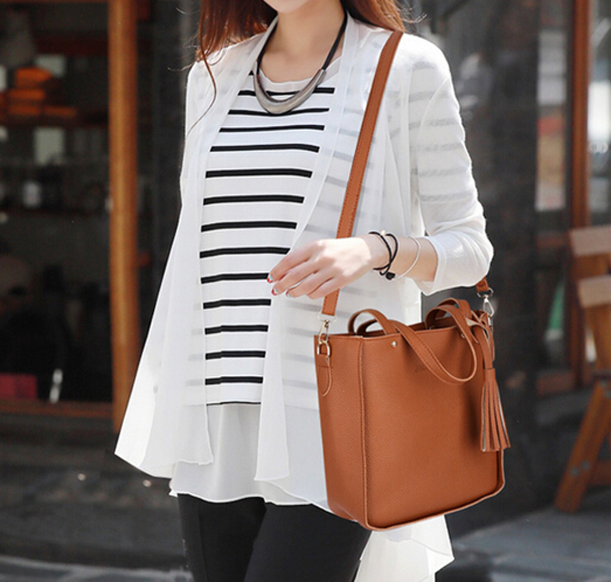 The large handbag with hand strap and adjustable long strap can be used as tote bag, shoulder bag or messenger bag