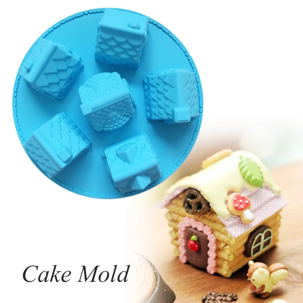 6-полости Силиконовые Рождественский пряничный домик торт форма шоколадовая форма для выпечки Инструменты