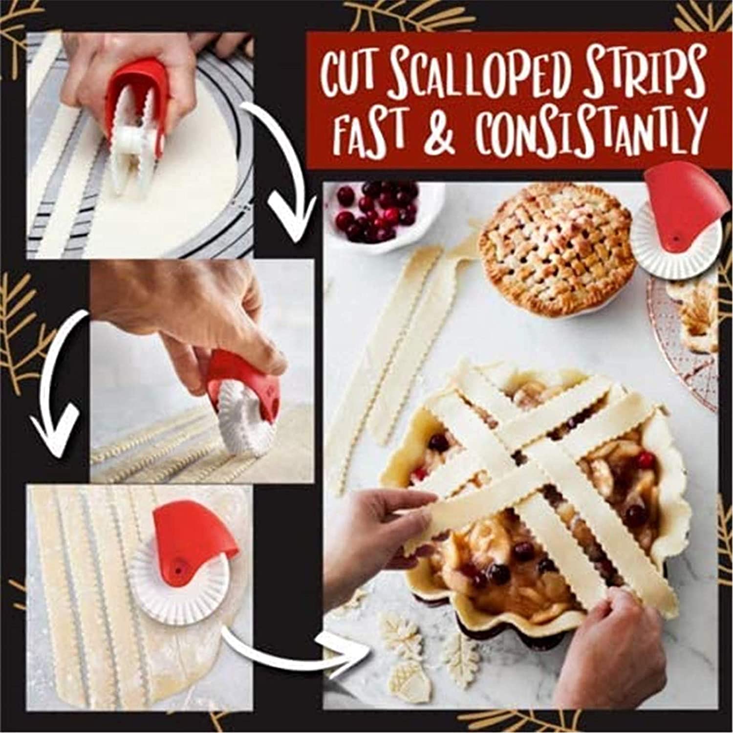 3. Простота в использовании с последовательными результатами; Катите резак колеса через пирожное тесто или макароны, чтобы создать даже полоски для решетчатых пирогов, скрипок и многое другое!