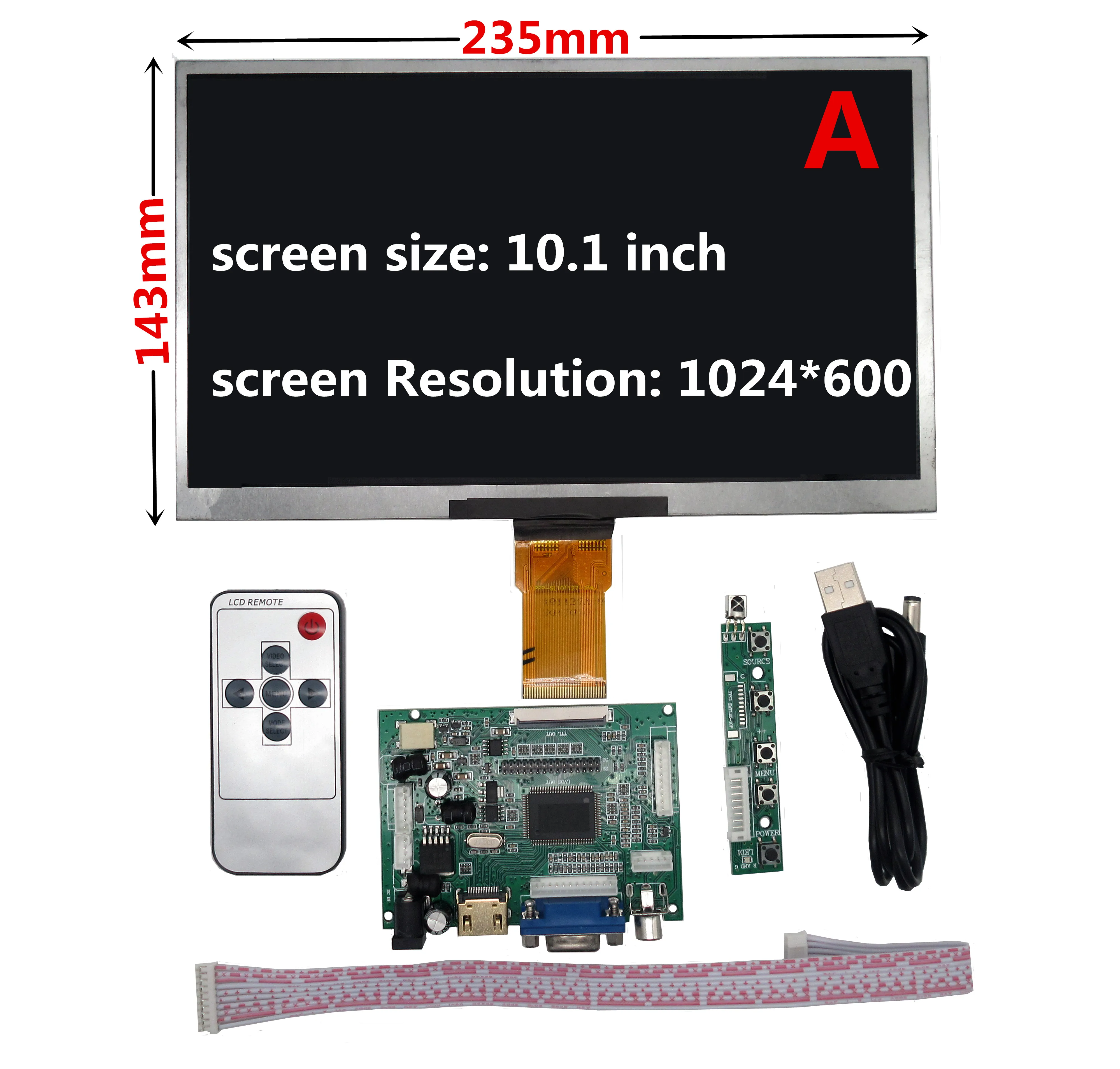 10,1 дюймов 1024*600 ЖК-дисплей Экран Дисплей для контроля уровня сахара в крови с драйвер Управление доска VGA HDMI-совместимый для Raspberry Pi Banana Pi