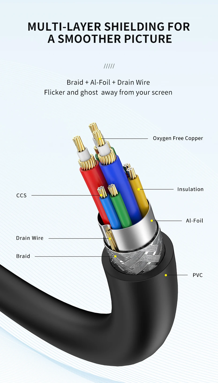 -Тройное Экранирование и ферритовый сердечник защищают от помех EMI/RFI
