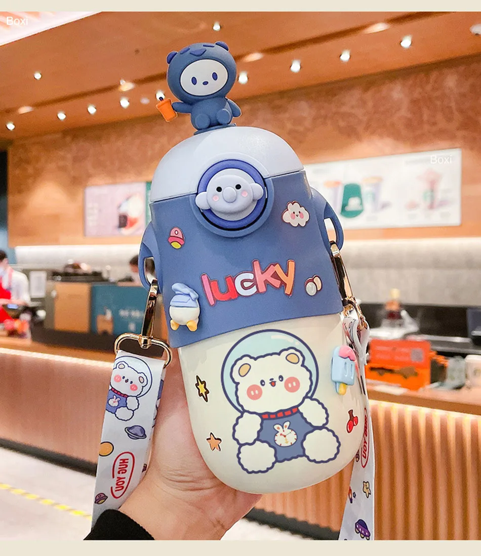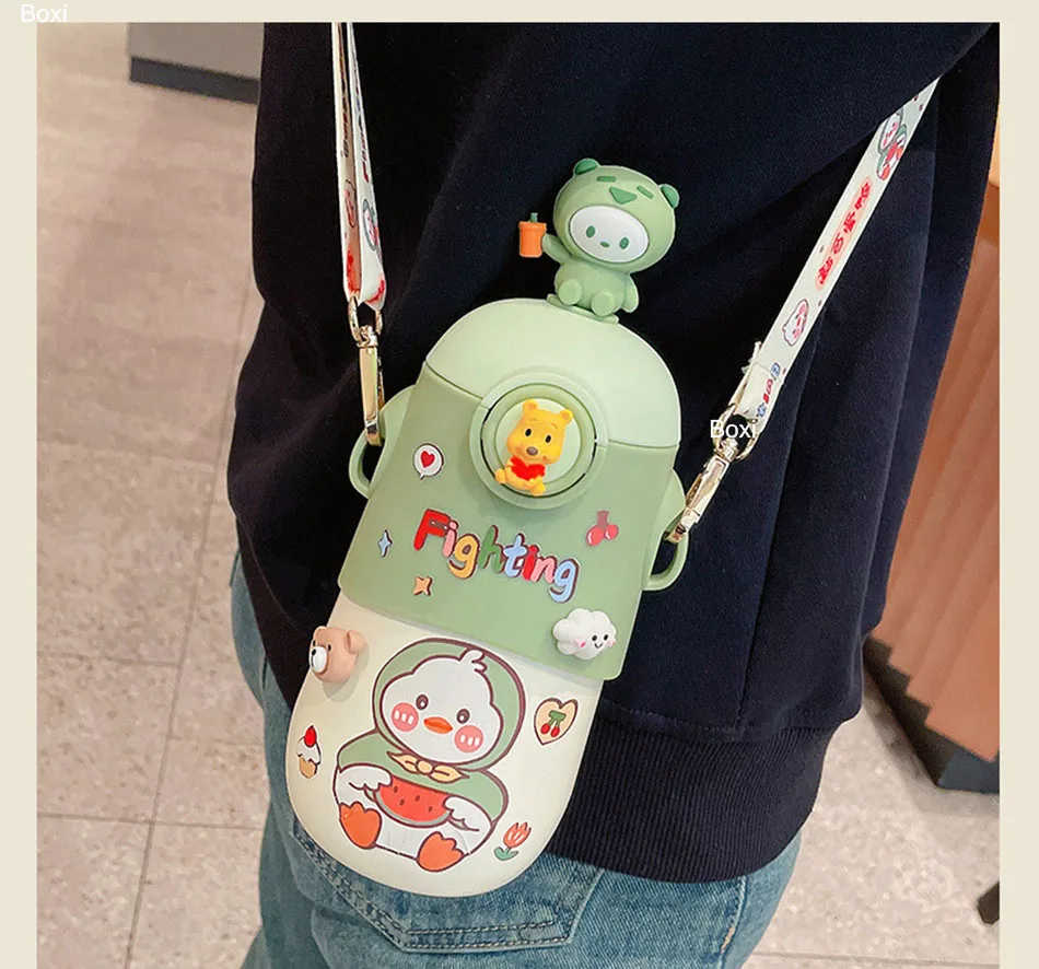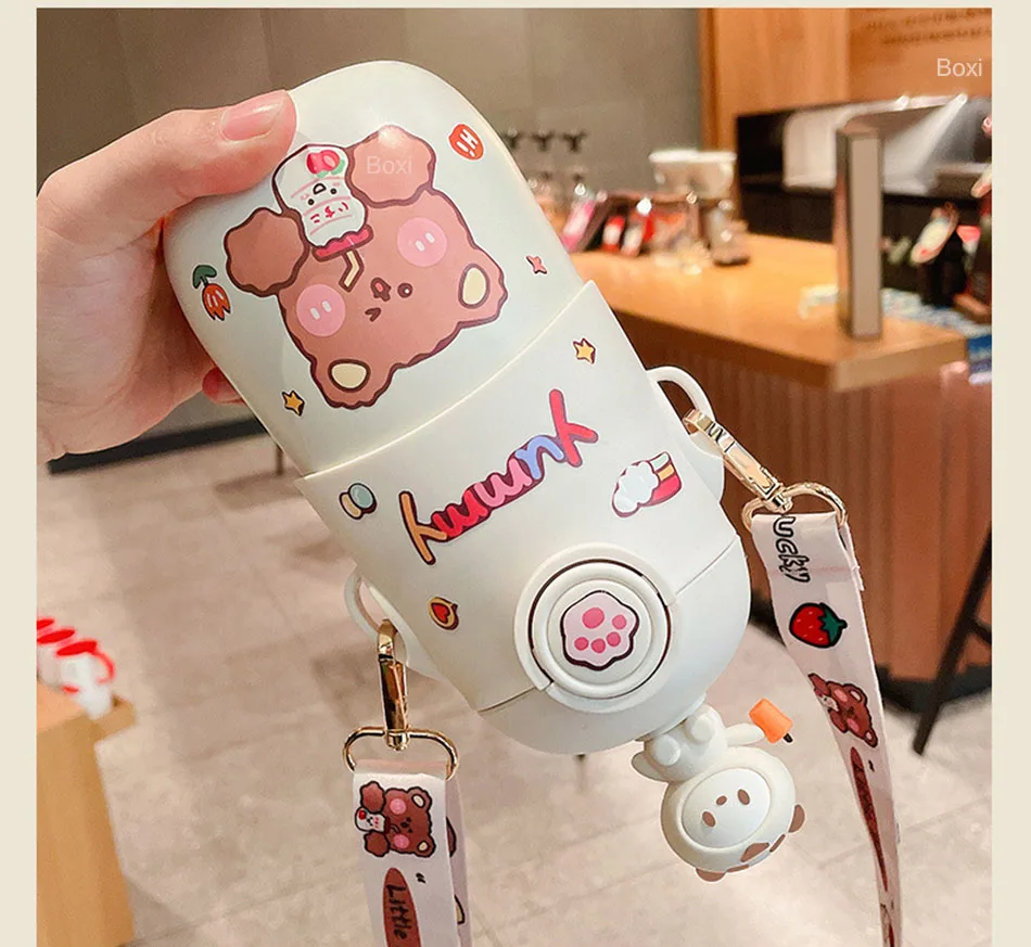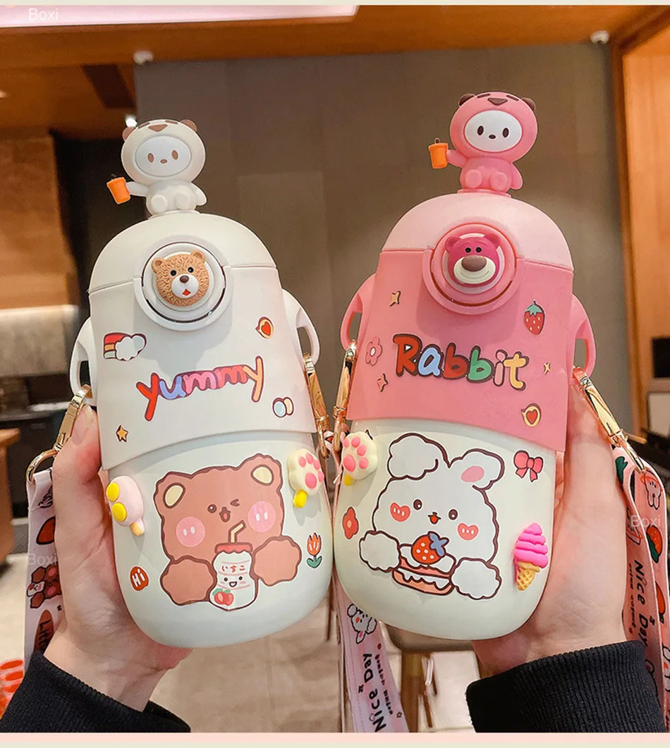 500 мл мультяшный милый детский термос с соломенной чашкой с ремешком Kawaii из нержавеющей стали изолированный стакан термобутылка для воды