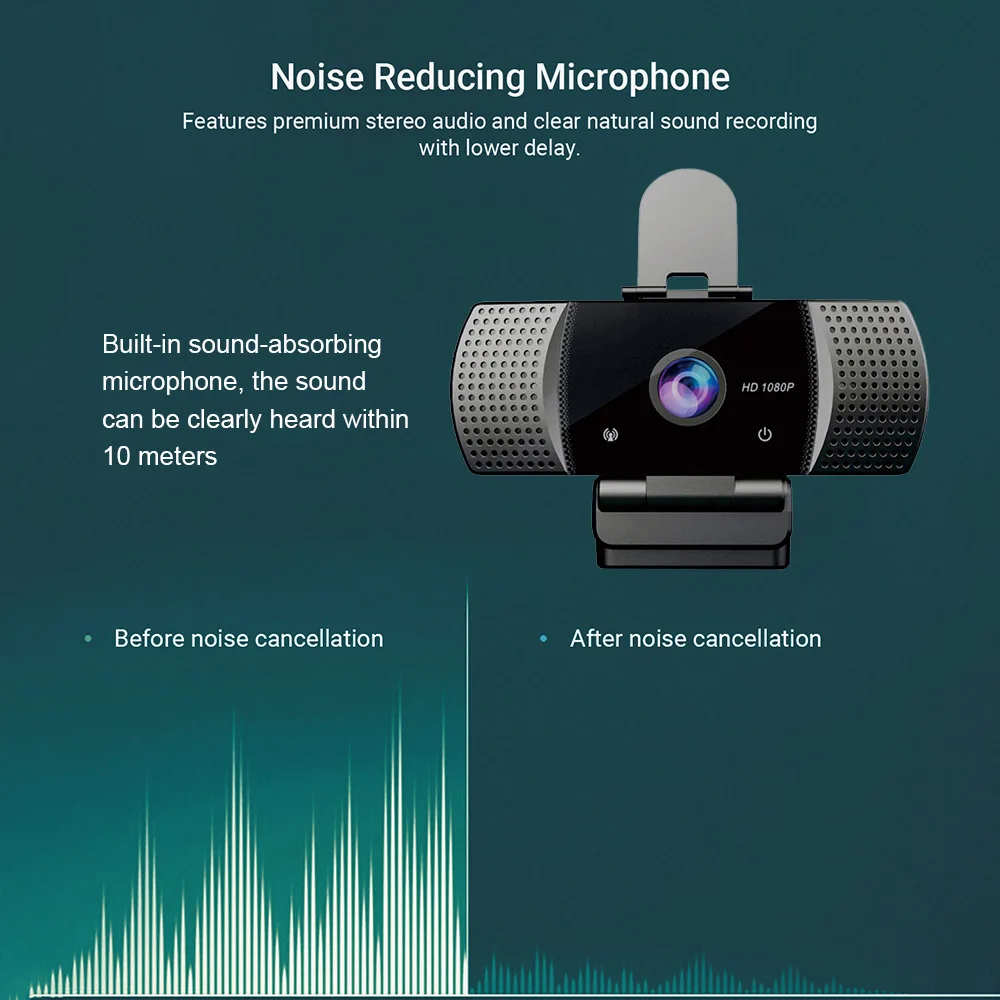Веб-камера USB с высоким разрешением 1080P с шумоподавлением и микрофоном для видеоконференций, Вебинара, прямой трансляции и многого другого.