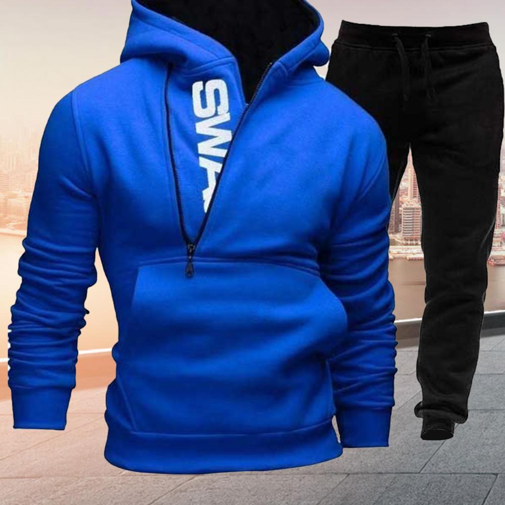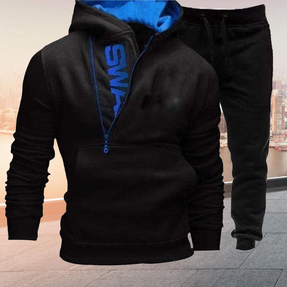1 комплект, толстовка с капюшоном и штаны, контрастный цвет, плюш, Осень-зима, толстый свитшот, эластичная резинка на талии, спортивные штаны для кемпинга