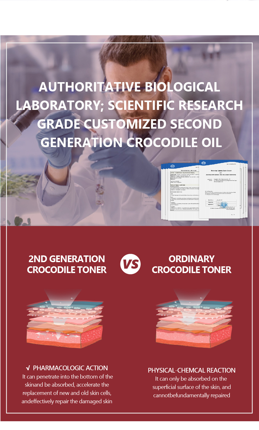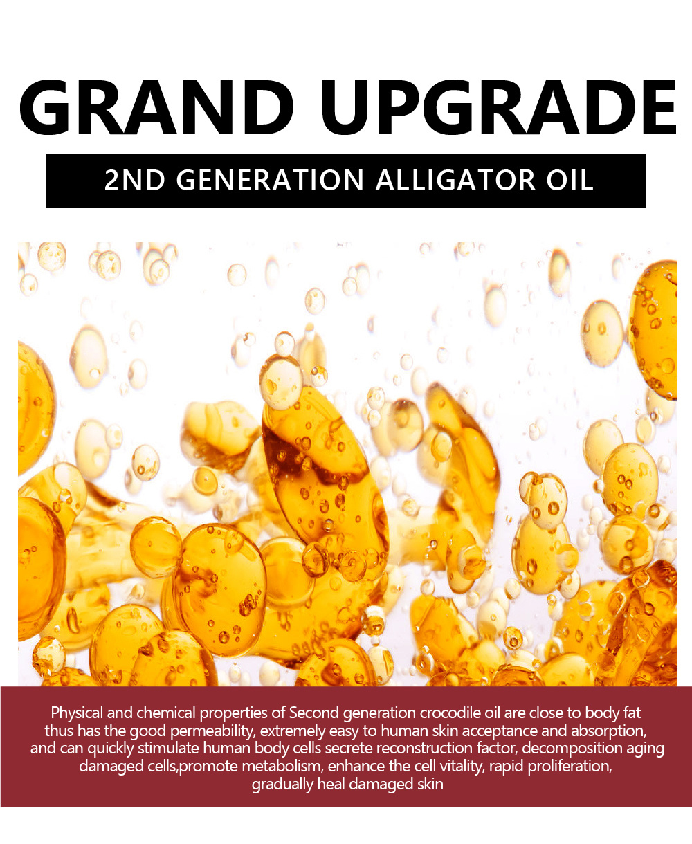 Физико-химические свойства крокодилового масла второго поколения близки к Жиру тела, таким образом, обладает хорошей проницаемостью, чрезвычайно легко для принятия и поглощения кожи человека и canquicy стимулирует клетчатый состав человеческого тела, фильтрует фактор восстановления, разложение поврежденных клеток, способствует метаболизму, повышает целлюлозную силу, быстрое пролиферацию, градуирует демагированную кожу