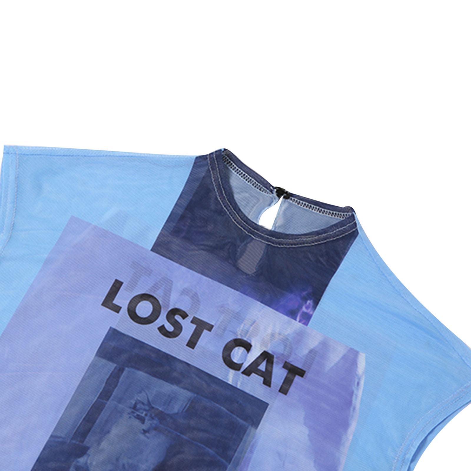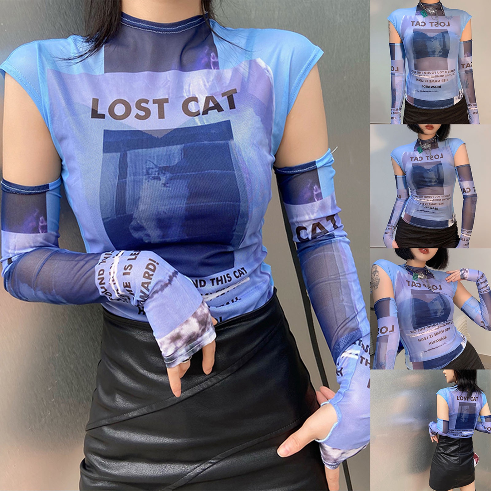 Женский сексуальный укороченный топ на бретелях, прозрачный сетчатый топ с буквенным принтом и рукавами-крылышками