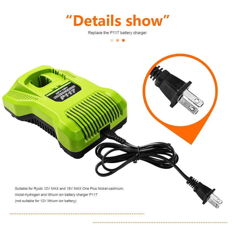 Совместим с аккумуляторами Ryobi P100, P101, P102, P103, P104, P105, P106, P107 и P108.