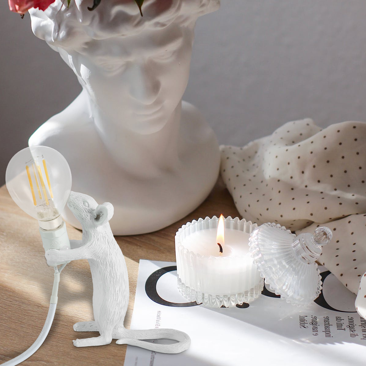 【Мягкий свет 】Этот смоляный стол с мышкой поставляется с лампой, это мягкий светильник, круглая и гладкая лампа накаливания, как игрушка, в сочетании с мышкой, добавляет много удовольствия.
