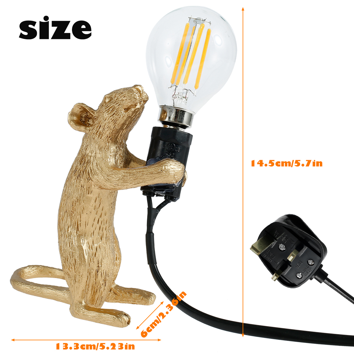 【Высокое Качество 】Эта мышь Настольный Светильник изготовлен из полимерного материала, стабильная производительность, длительный срок службы, а также уникальный дизайнерское нижнее белье; Размер около 5,7*5,2*2,36 дюймов. Есть белый и золотой, 2 цвета на ваш выбор.