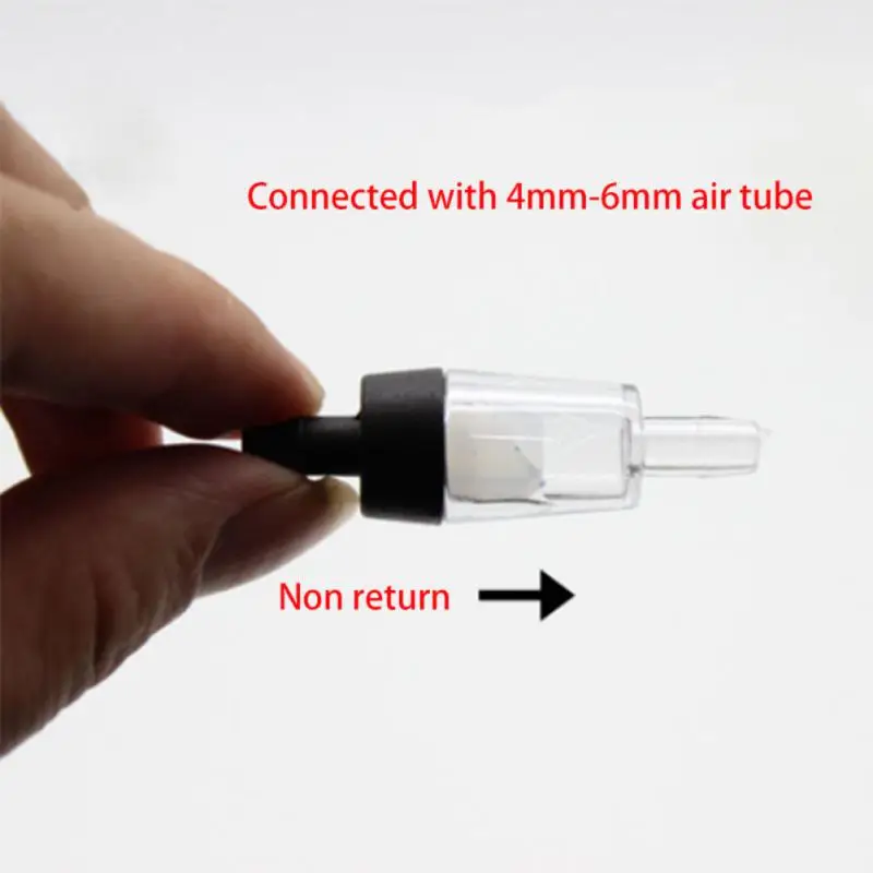 Функция обратного клапана-когда кислородный насос помещается ниже уровня воды аквариума (например, на нижней шкафу или на рабочем столе), когда кислородный насос перестанет работать из-за отключения питания или по другим причинам, вода в аквариуме может снова погружаться в кислородный насос, В результате повреждения на входе воды или сжигания кислородного насоса. Обратный клапан может решить эту проблему.