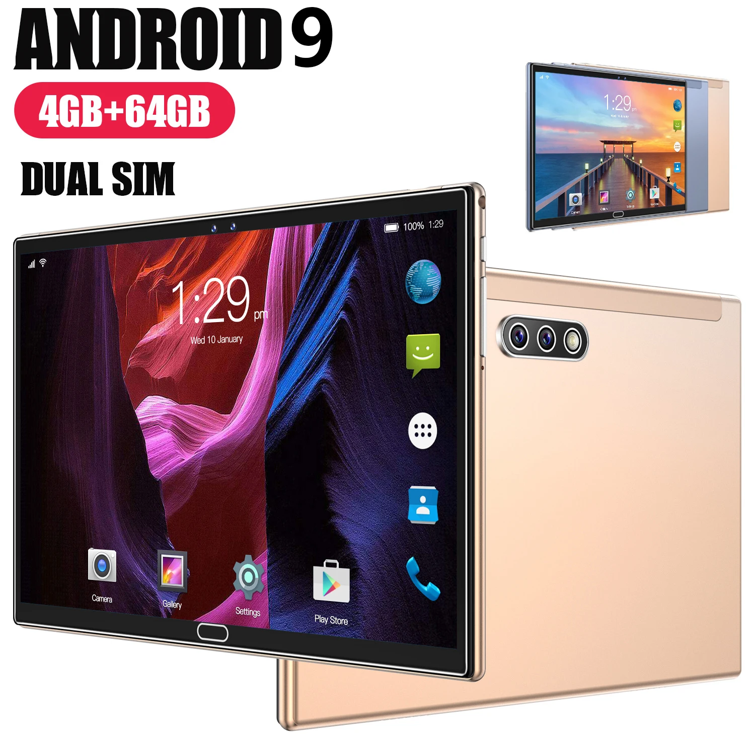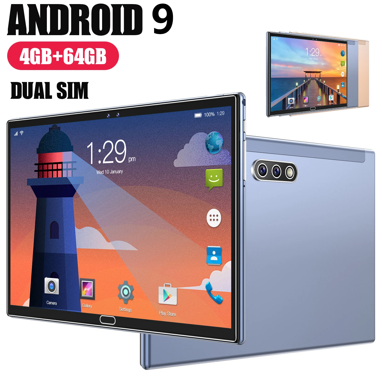 Новый 2021 10,1 дюймового планшета, тройная камера высокой четкости, большой экран, 4G Android 9,0, 4 Гб Оперативная память, 64 ГБ Встроенная память