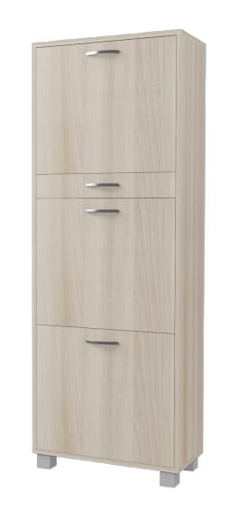- Узкая обувница, которая послужит Вам тумбой, благодаря своей удобной высоте. - Удобный выдвижной ящик, в который можно спрятать все щётки и крема для обуви. - Две поворотные секции разместят 12-16 пар Вашей обуви в идеальном порядке. - Поворотное устройство под обувь - пластик. - Ручки - пластик. - Опоры регулируемые.Товар под заказ.
