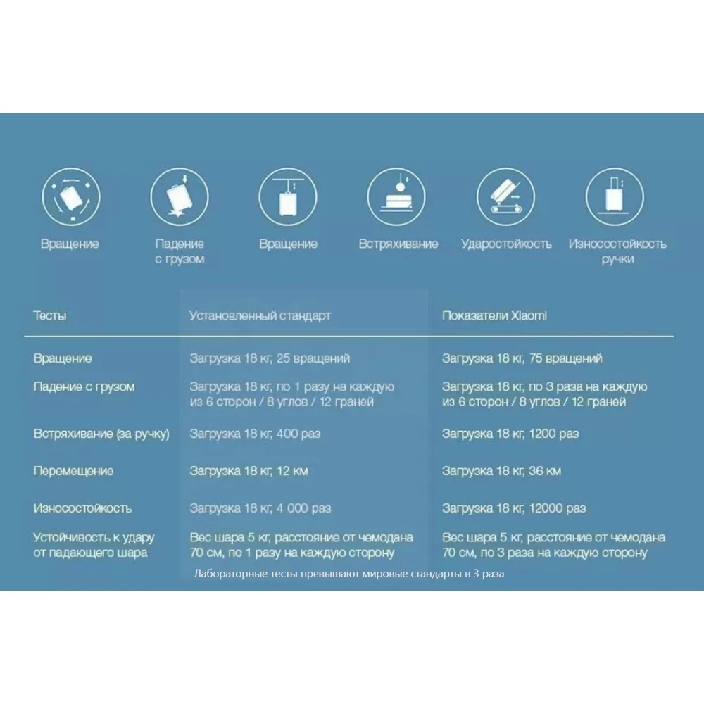 Производитель задался целью сделать чемодан Xiaomi Mi Trolley особо прочным. Для этого при его изготовлении использовался материал Makrolon от немецкой марки Bayer (3 слоя). Это особый класс поликарбоната, который хорошо выдерживает высокие и низкие температуры (от -110С до +120С), не боится механических нагрузок, царапин, падения и коррозии. Makrolon переносит даже испытания градом. Поэтому такой чемодан всегда будет выглядеть как новенький, даже после многих путешествий. На нем не будут образовываться вмятины, трещины и царапины. Сверху изделие покрыто композитным раствором для защиты от ржавчины, плесени, огня и других негативных факторов. При всем этом изделие весит всего 3,5 кг.Рельефная структура для идеального внешнего видаТрехслойный материал с композитной пропиткой