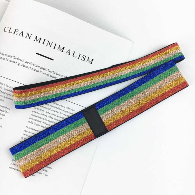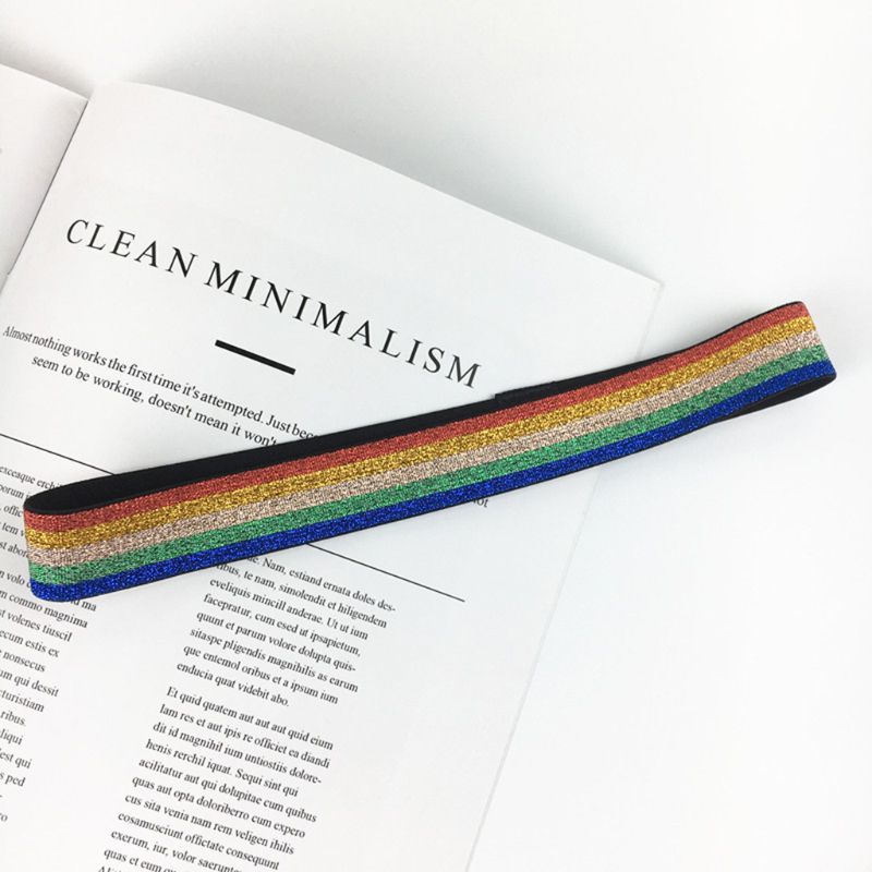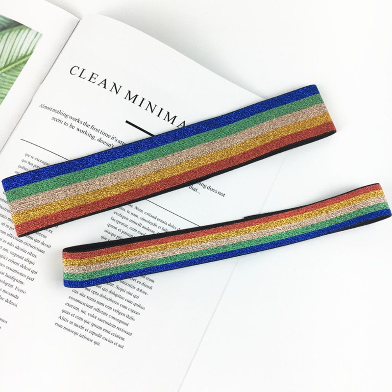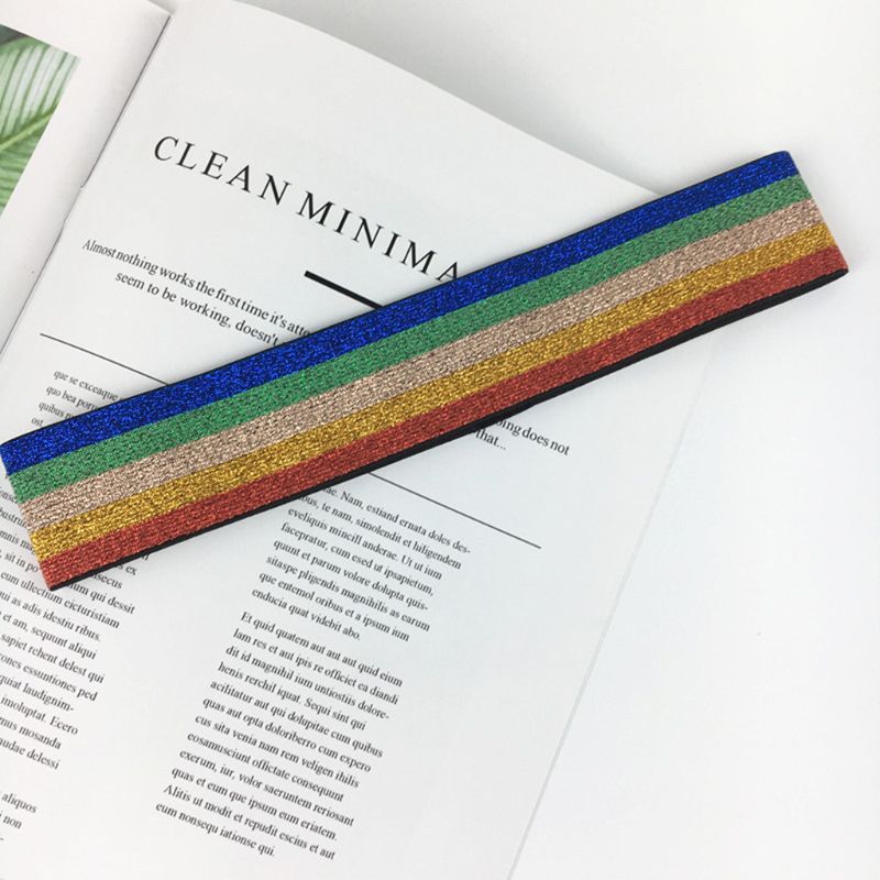 Японский Харадзюку Женская эластичная повязка на голову блестящее волокно радужные полосы пэчворк повязка для волос Спортивная Йога Бег тюрбан 101A