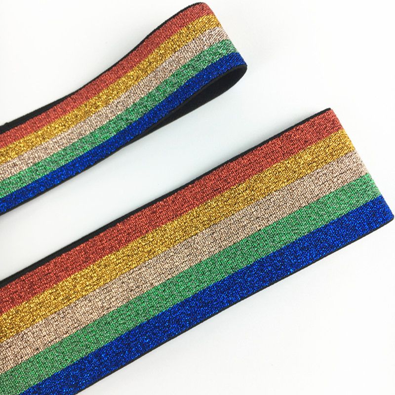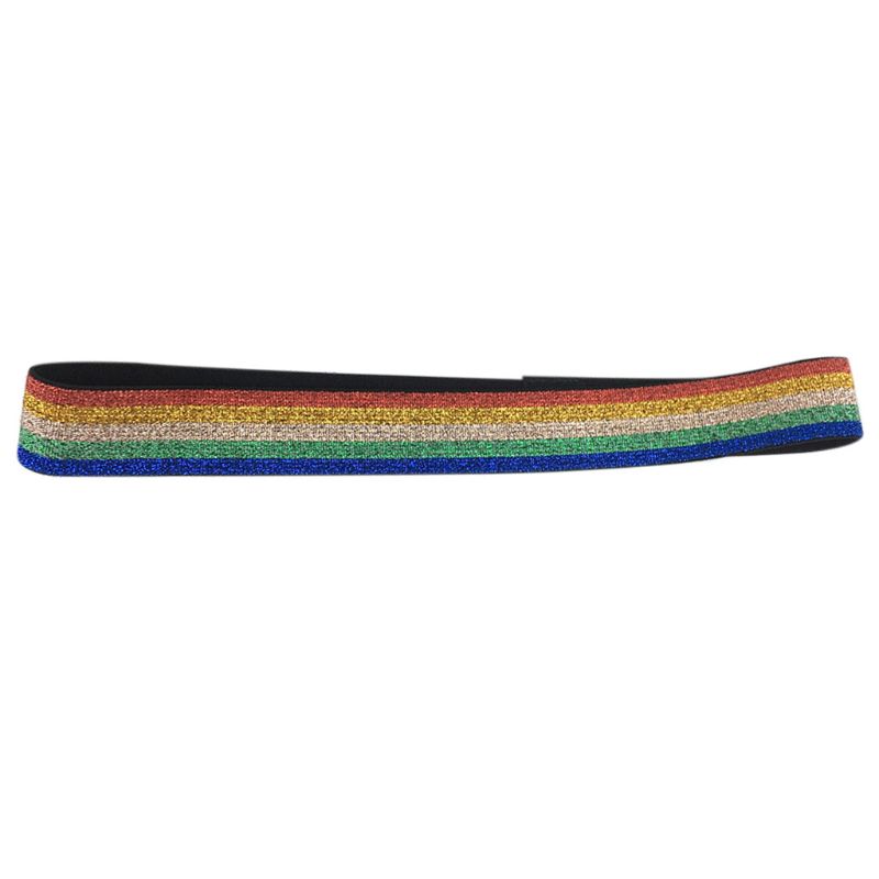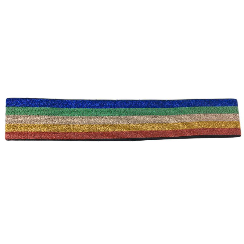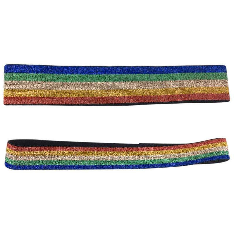 Эластичная, широкая/узкая головная повязка, блестящее волокно, радужные цветные горизонтальные полосы в стиле пэчворк, 2 размера на выбор.