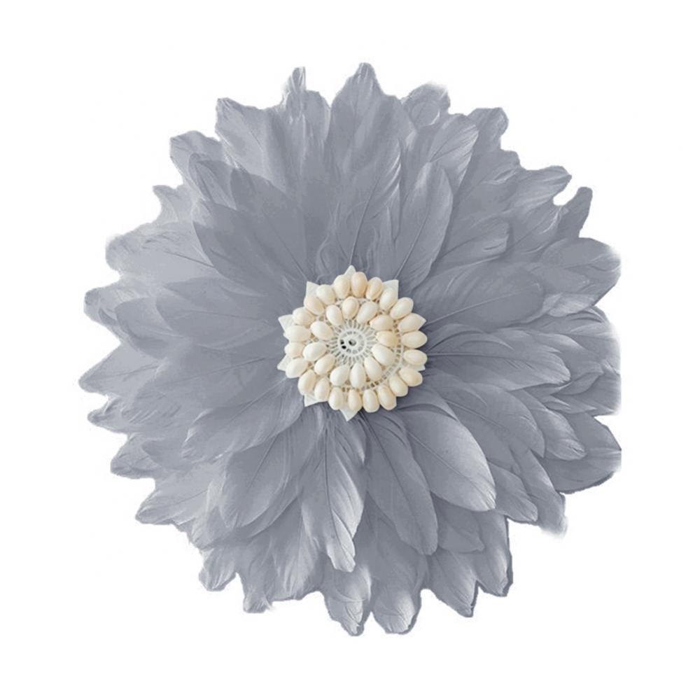 Перьевая искусственная Цветочная конструкция с раковиной посередине и соломенной петлей на спине.