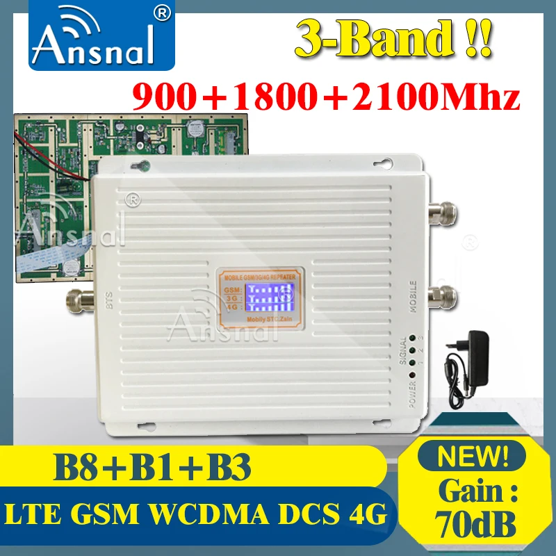 Band8)900 МГц + Band3)1800 МГц + Band1)2100 МГц 4G усилитель сотовой связи!