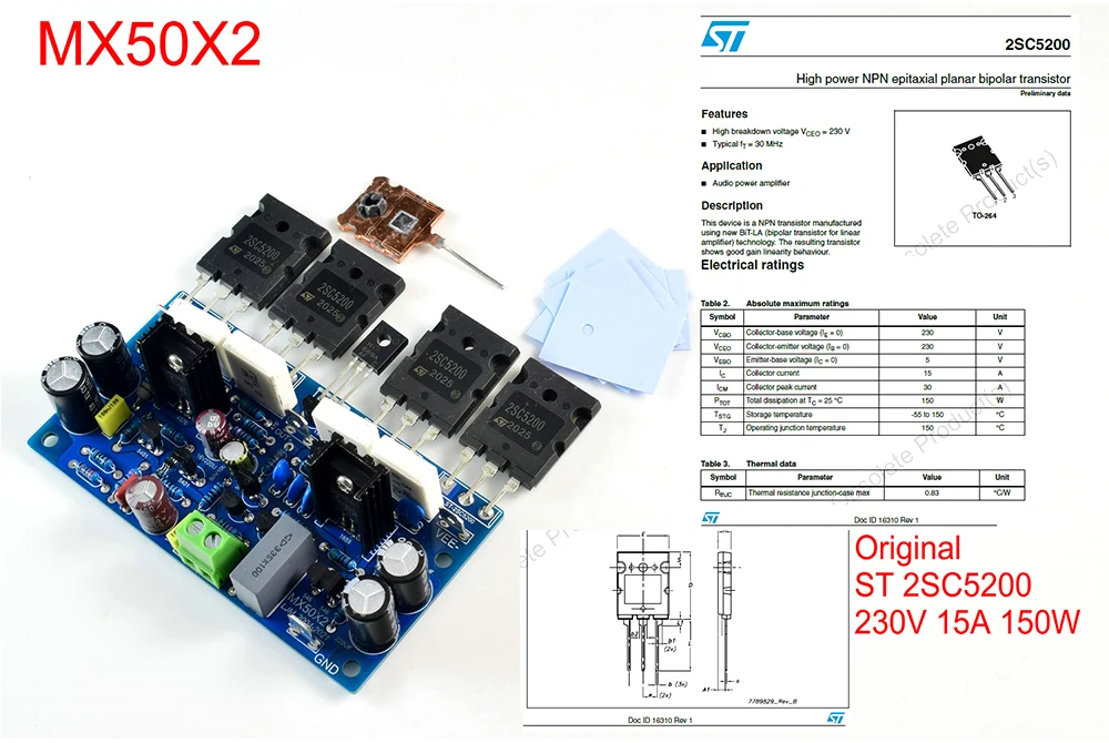 ● В силовой трубке используется оригинальный ST 2SC5200 (230 В, 15A, 150 Вт)