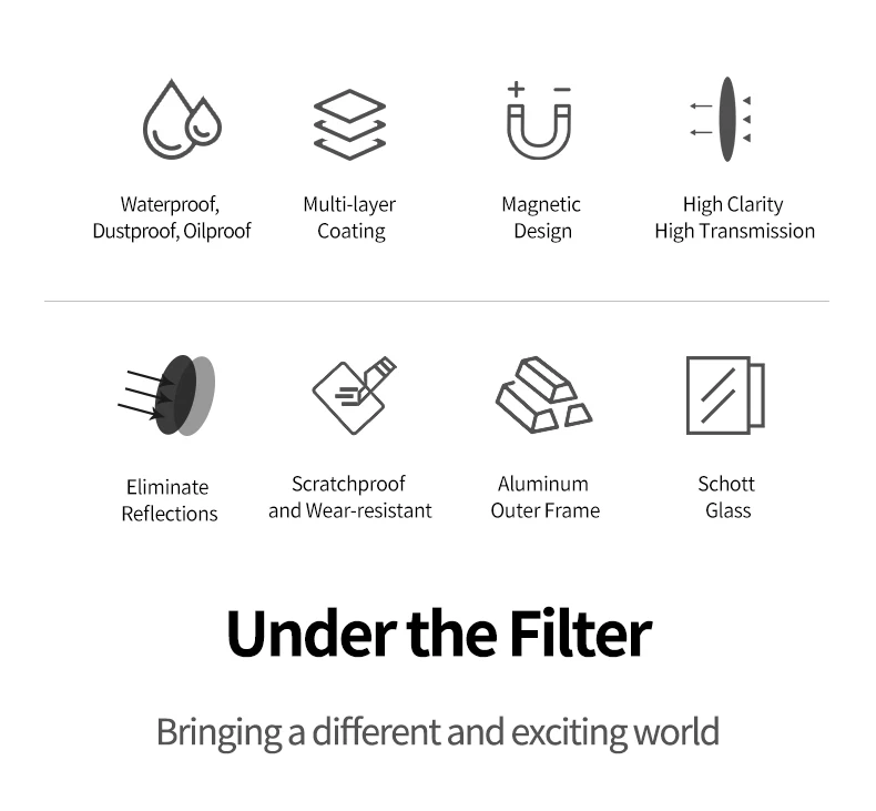 3.ND фильтр уменьшает светильник, чтобы уменьшить вероятность превышения экспозиции, сбалансировать контрастность изображения и запечатлеть насыщенный цвет острыми кадрами.