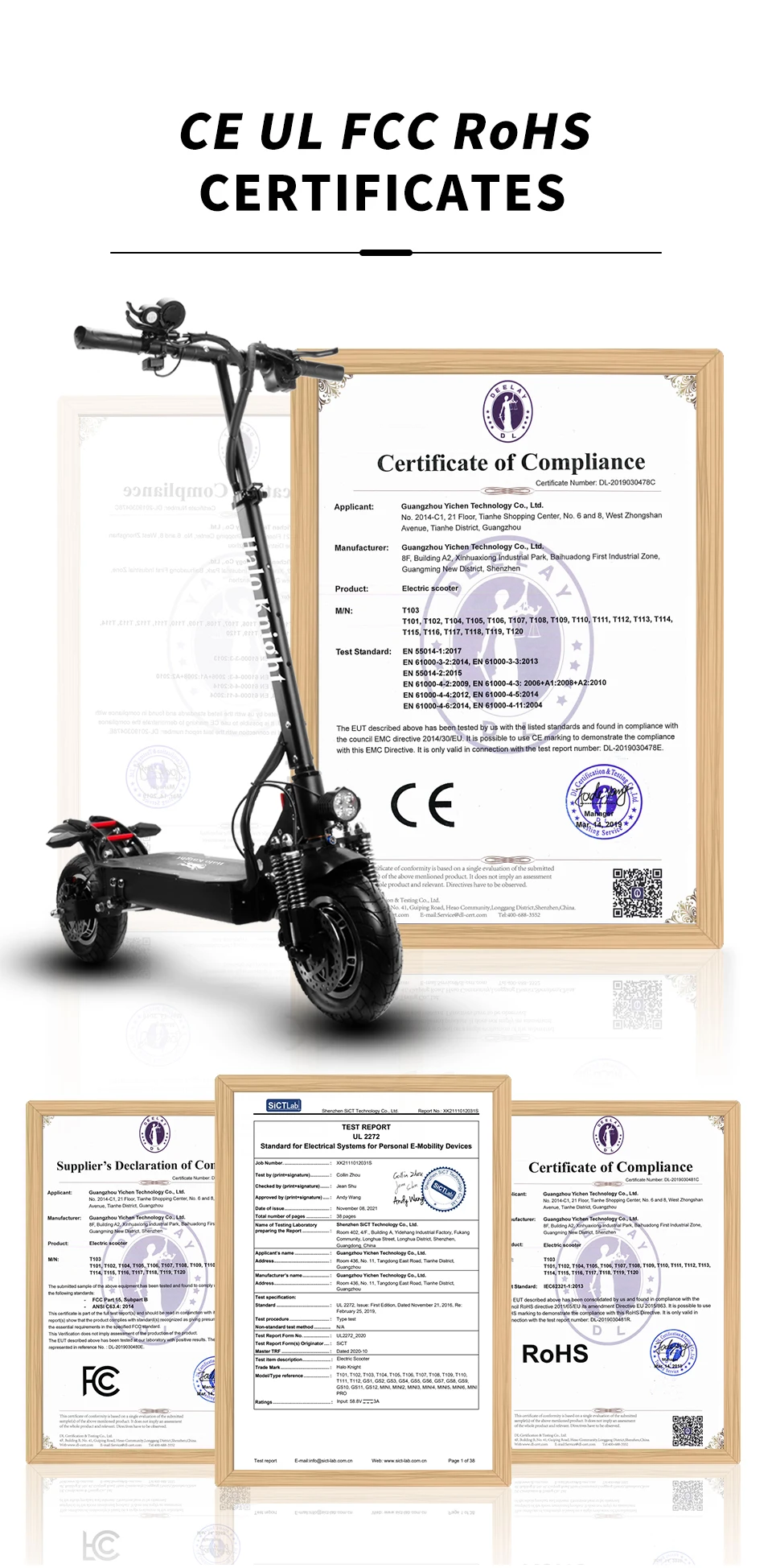 Скутеры Halo Knight прошли строгие проверки с сертификатами CE UL RoHS FCC, пожалуйста, будьте уверены в покупке и использовании.
