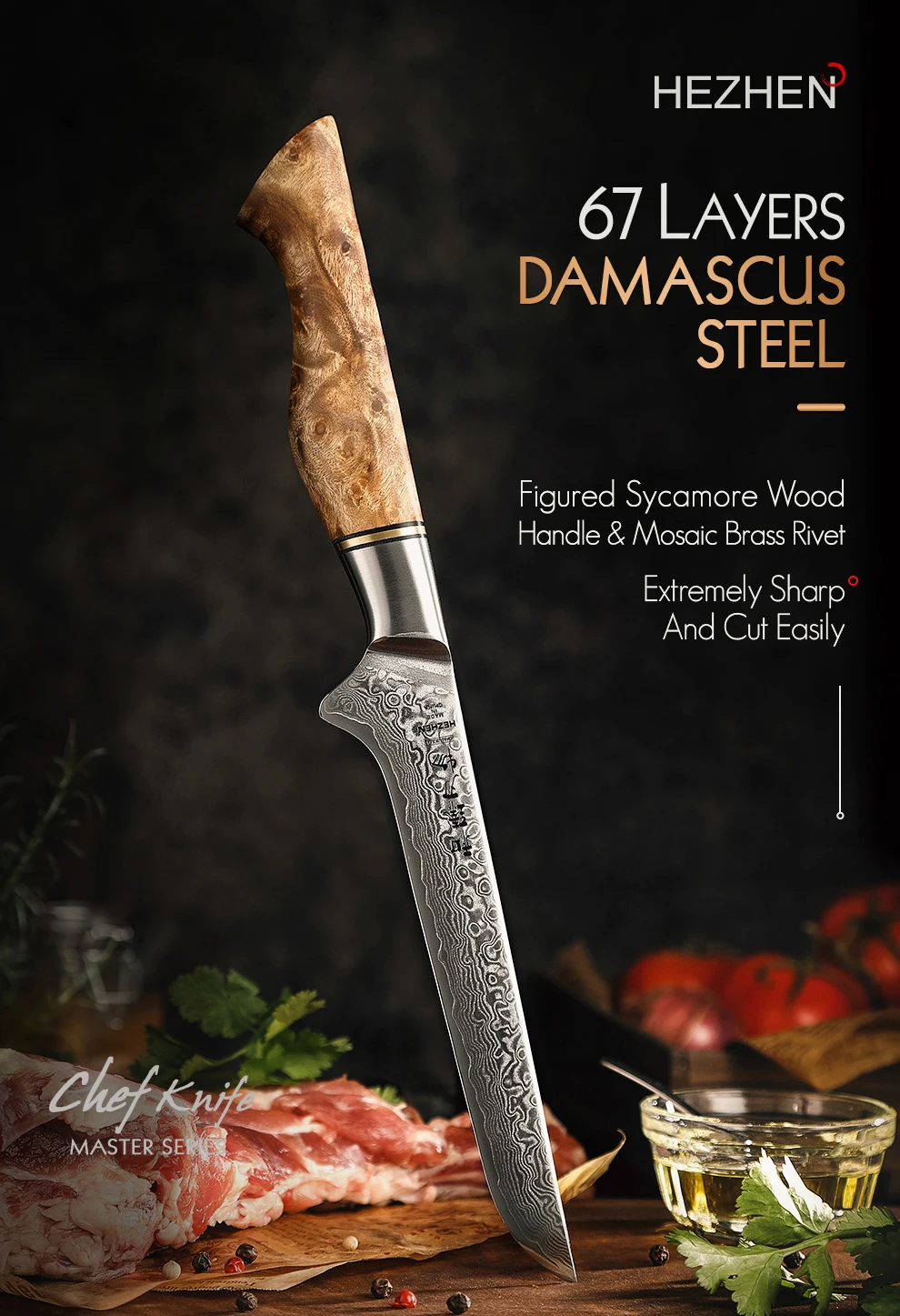 HEZHEN Master Series дамасский стальной нож для обвалки