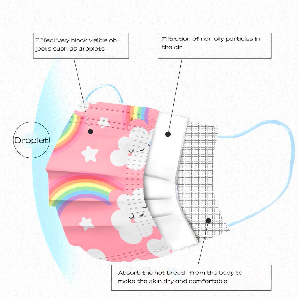 В 3 слоя Нетканая одноразовая маска изготовлена из 3 слоев нетканого материала, Безопасен и безопасен для использования. Дышащий материал и милый Узоры, которые делают его полезным и модным. Специальный 3 слоя из нетканого материала Дизайн, обеспечивает некоторую защиту от пыли, автомобильных выхлопных газов, Пыльца и т. д. эластичная Ушная петля, легко носить и не давит на уши. Маникюрный салон или любые другие области, где может потребоваться защита