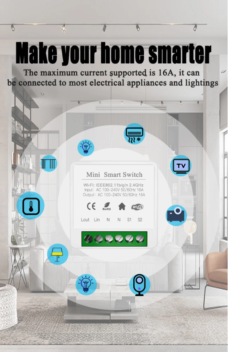 Например, переустановка настольной лампы в умную настольную лампу, и мобильный телефон может управлять переключателем светильник. Чтобы превратить светильник вниз в умный вниз светильник, вам нужно только подключить модуль smart switch к переключателю, а затем Alexa/Google assistant может управлять переключателем светильник.