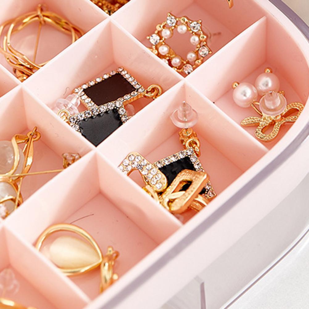 Эта коробка для ювелирных изделий оснащена съемным отсеком с 30 маленькими сетками, что помогает вам держать много браслетов, колец и сережек.