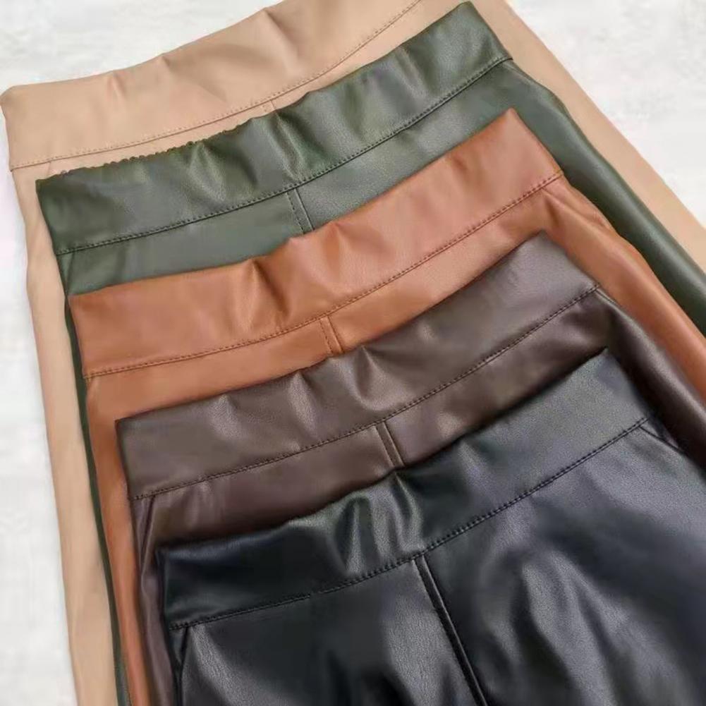 Женская однотонная офисная юбка из искусственной кожи с эластичным поясом и боковыми карманами