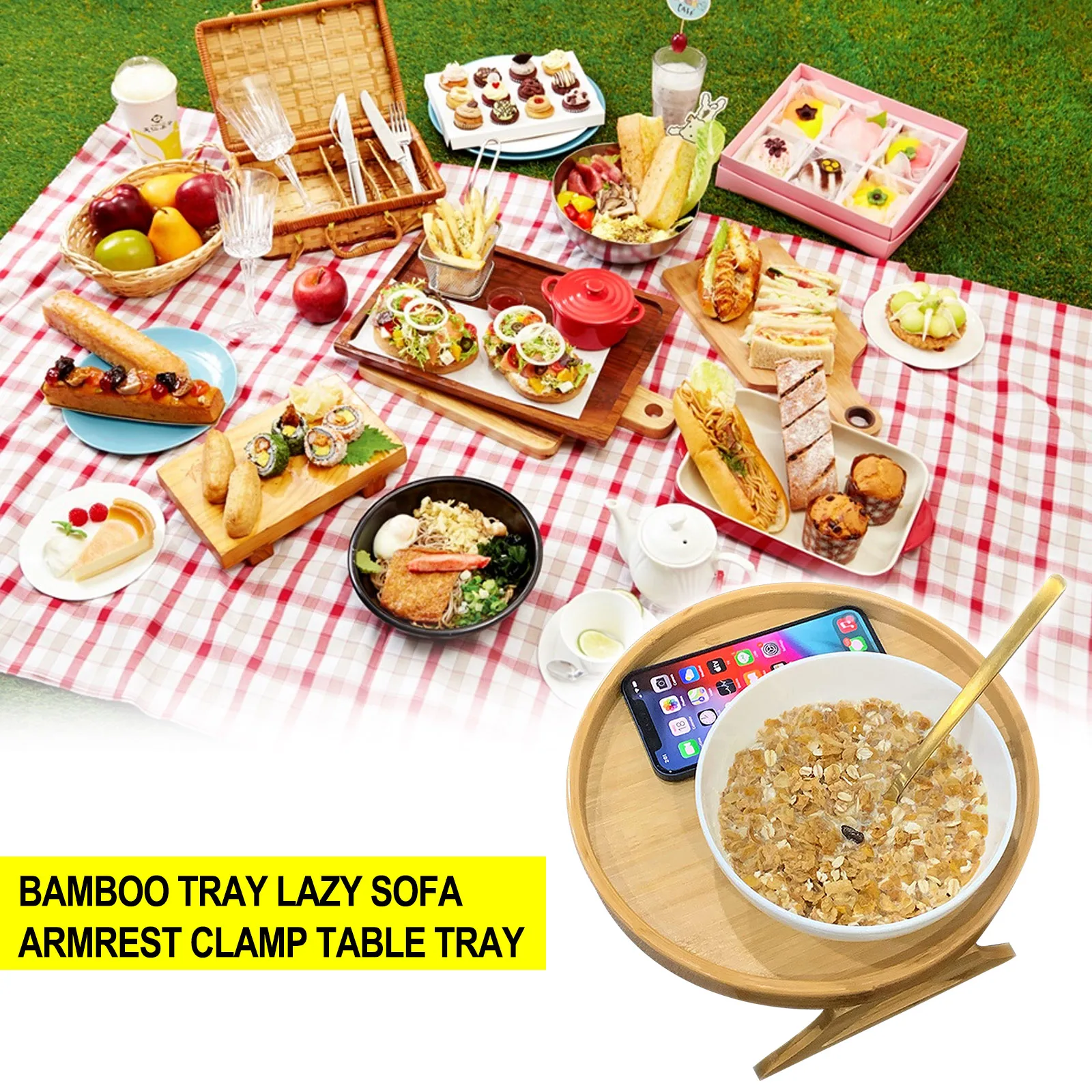 Бамбуковый диван подлокотник клип стол деревянный Телевизор закуски лоток деревянный диван поднос удобный пульт дистанционного управления/Напитки/держатель телефона/кофе/закуски