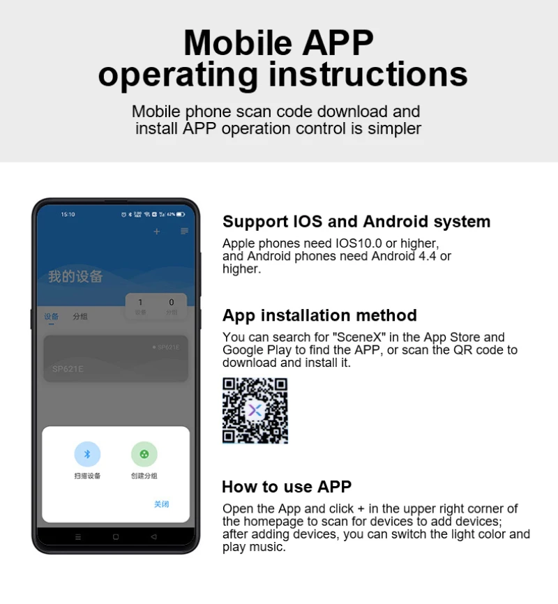 Включите bluetooth на свой мобильный телефон, легко Управляйте свой мобильный телефон через приложение и немедленно Начните свою красочную жизнь.
