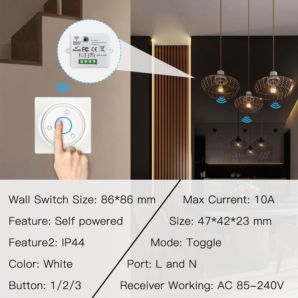 После сопряжения с настенным выключателем, вы можете управлять домашними огнями беспроводным и удаленным образом. Крытый 50 м, открытый 200 м