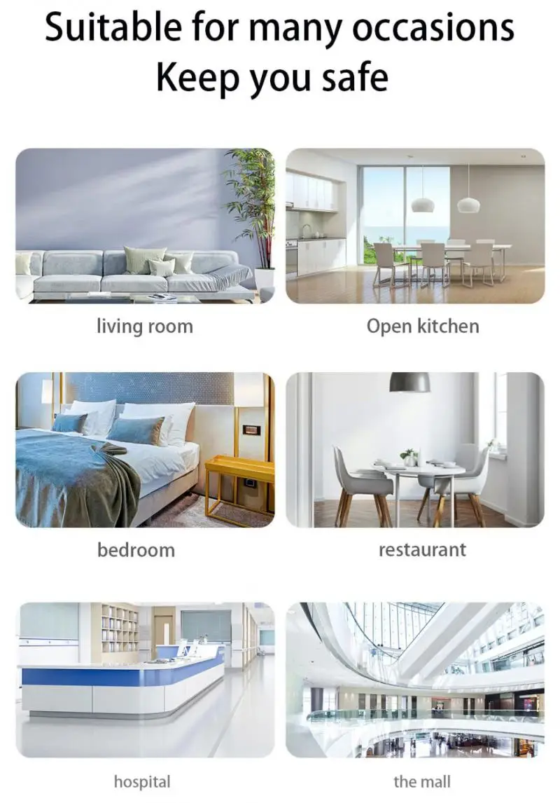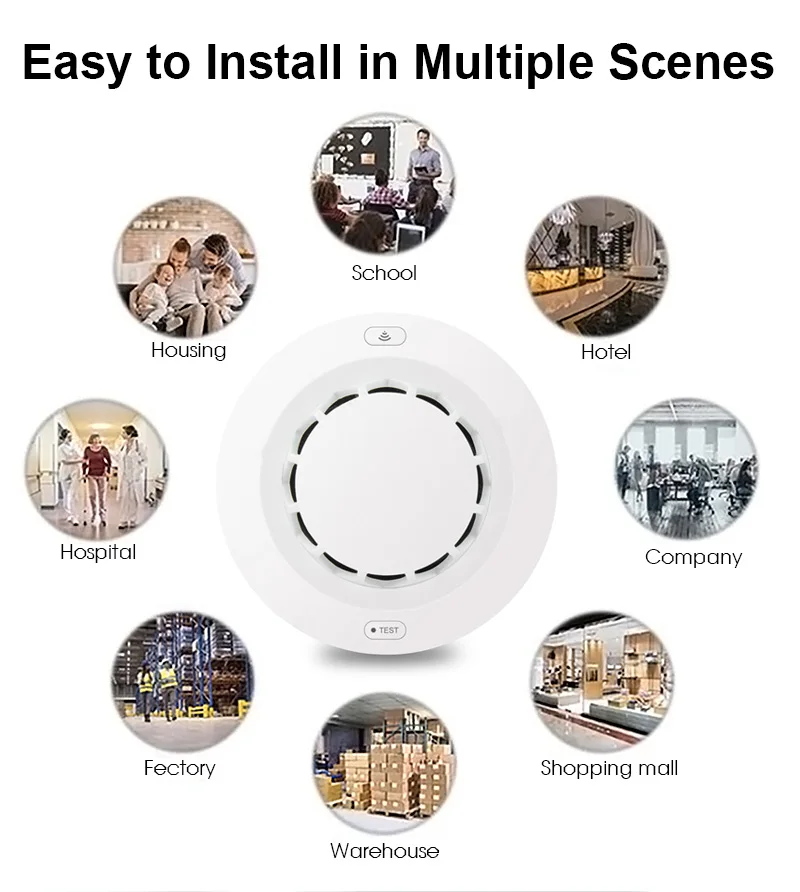 Тревожит Вас и Вашу семью вовремя. Его можно широко использовать в домашнем хозяйстве, гостиной, кофейне, танцевальном зале и в любых других местах, где требуется мониторинг пожарной сигнализации. (Такой датчик не может обнаруживать газ/тепло/огонь.)