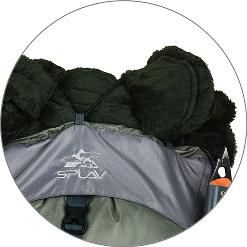 Объёмный открытый фронтальный карман «краб» фиксируется боковыми стяжками и дополнительно верхней оттяжкой
