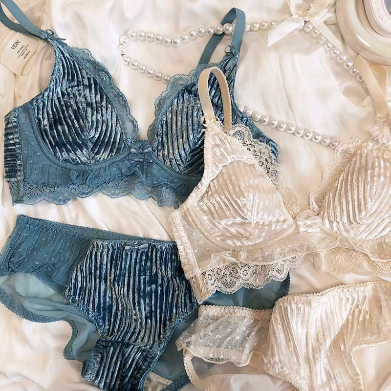 Осенне-зимний бархатный бюстгальтер без косточек с треугольными чашечками, комплект нижнего белья без стальных колец, комплект нижнего белья с бюстгальтером и трусиками, сексуальный комплект
