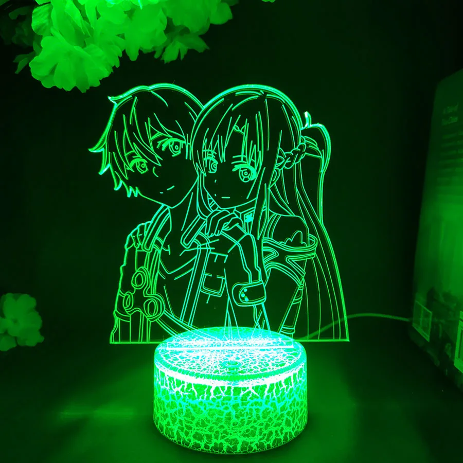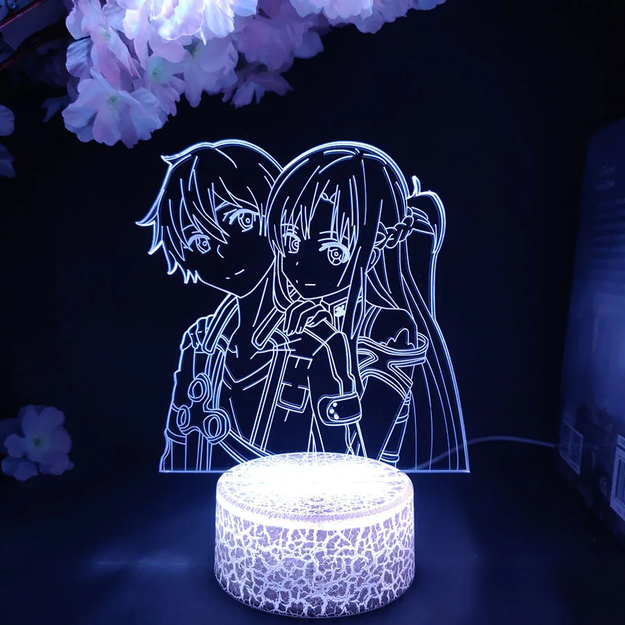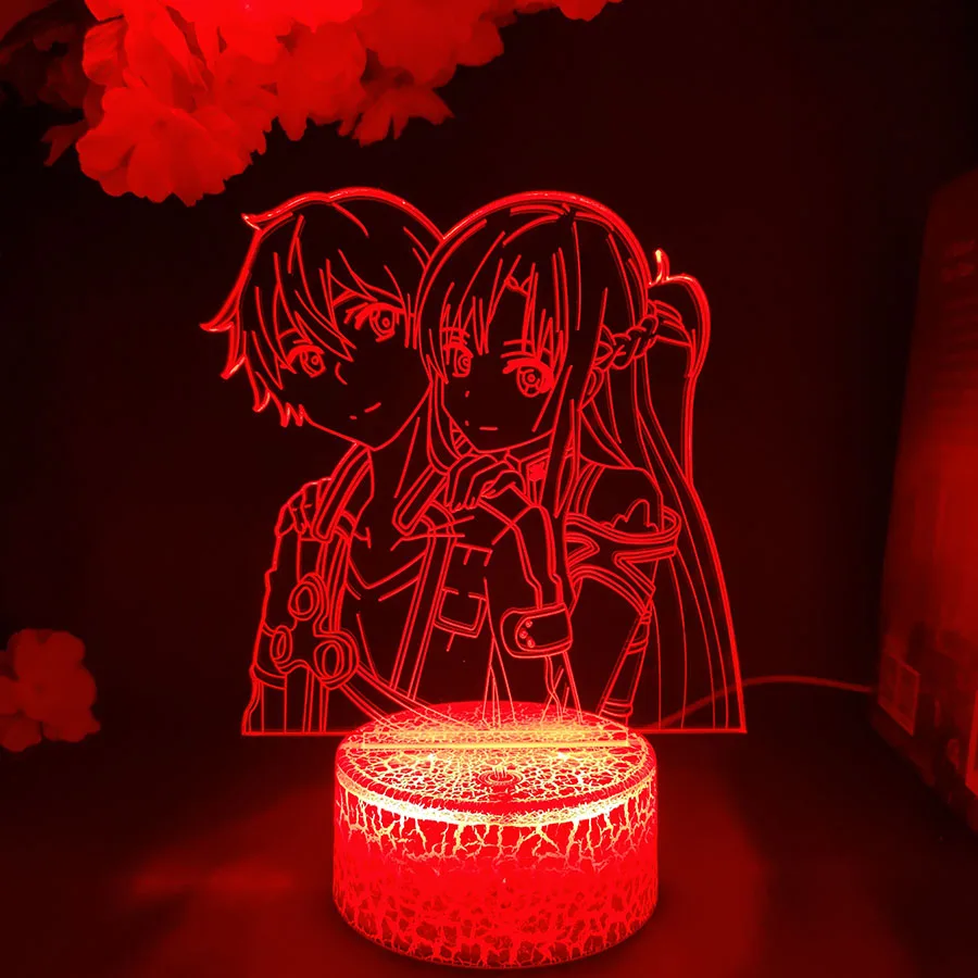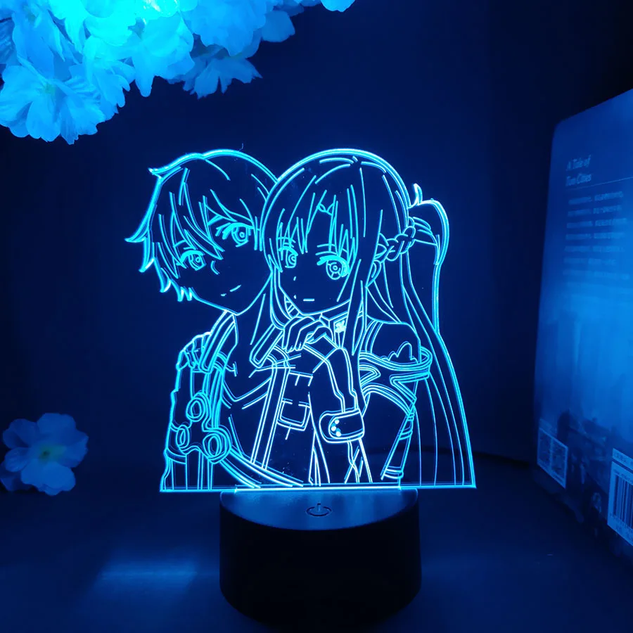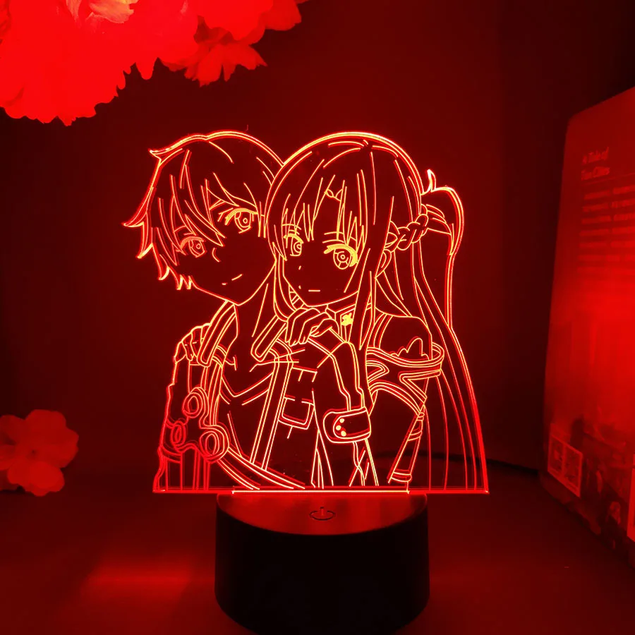 Кирито и Асуна 3D ночник милое украшение комнаты манга меч искусство онлайн фигурка светодиодный светильник аниме женский Декор для спальни