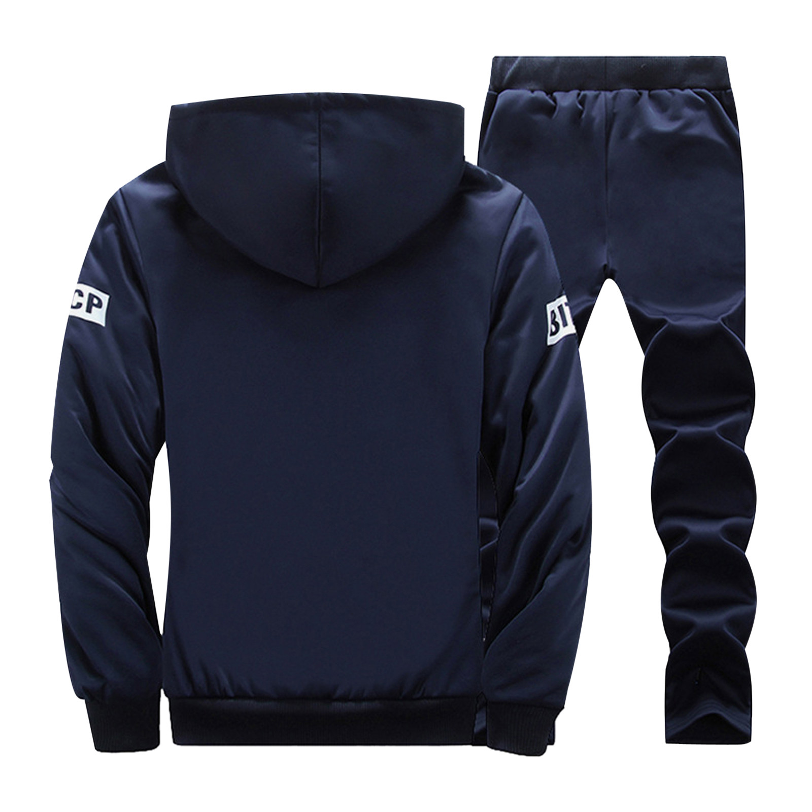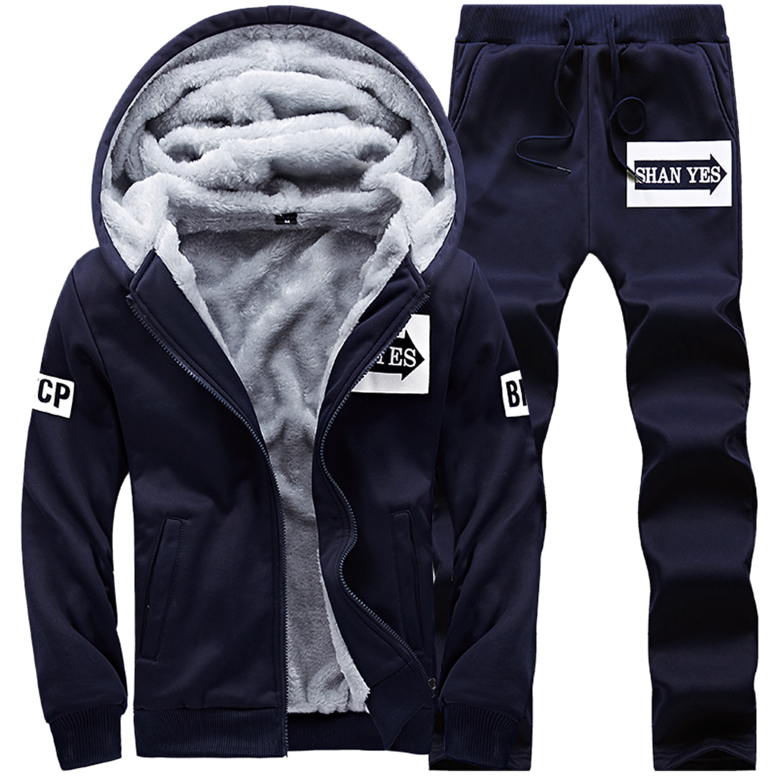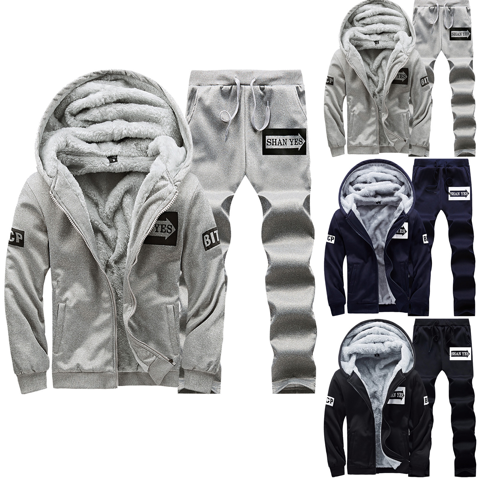 Мужской повседневный комплект из двух предметов с принтом, плюшевое пальто с капюшоном и карманами, штаны на завязках