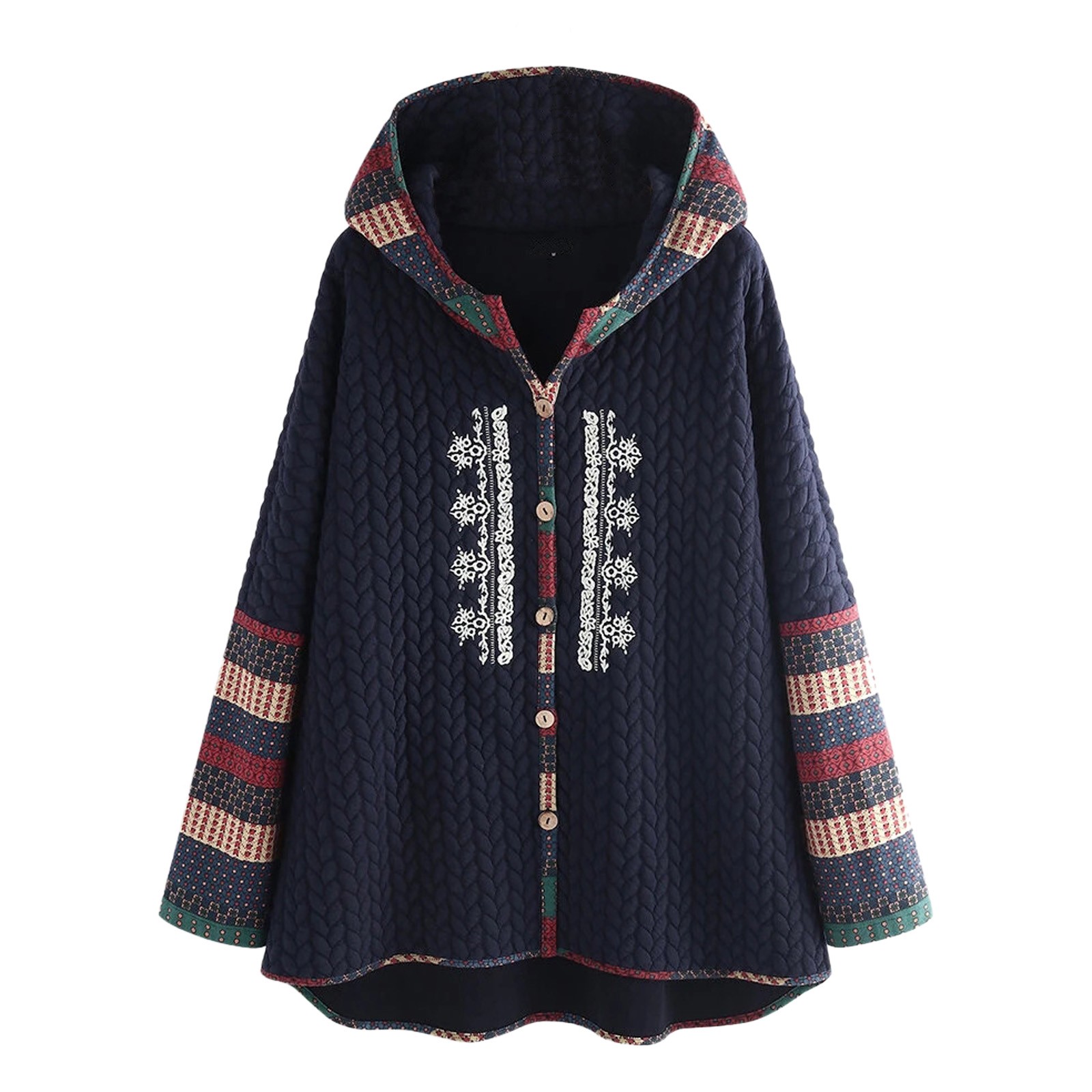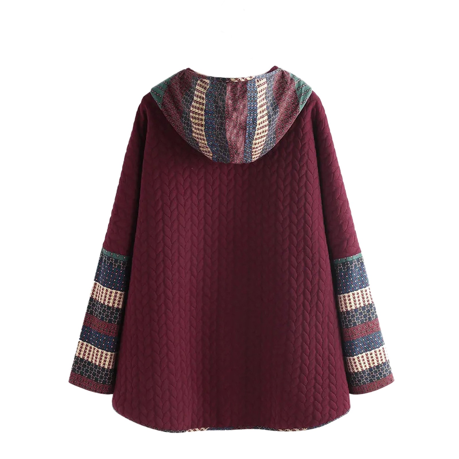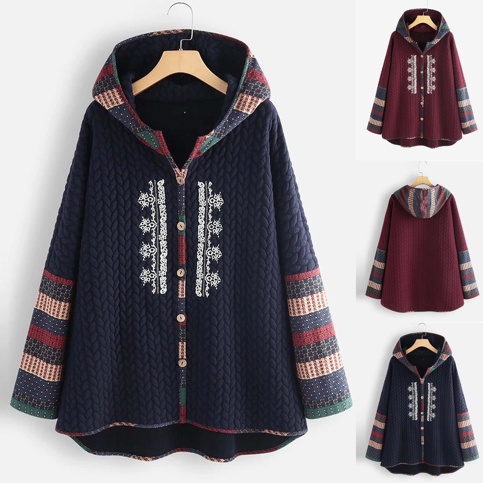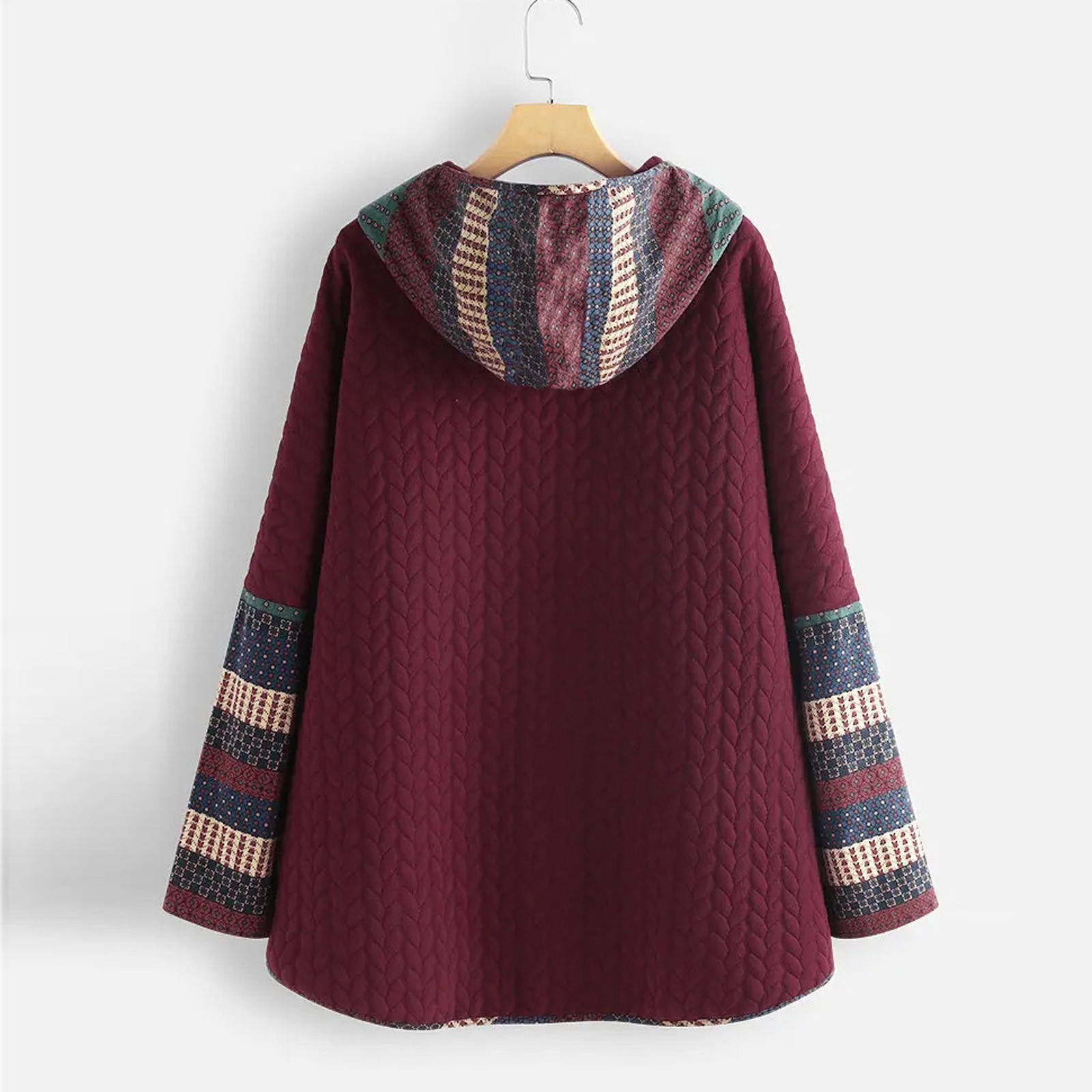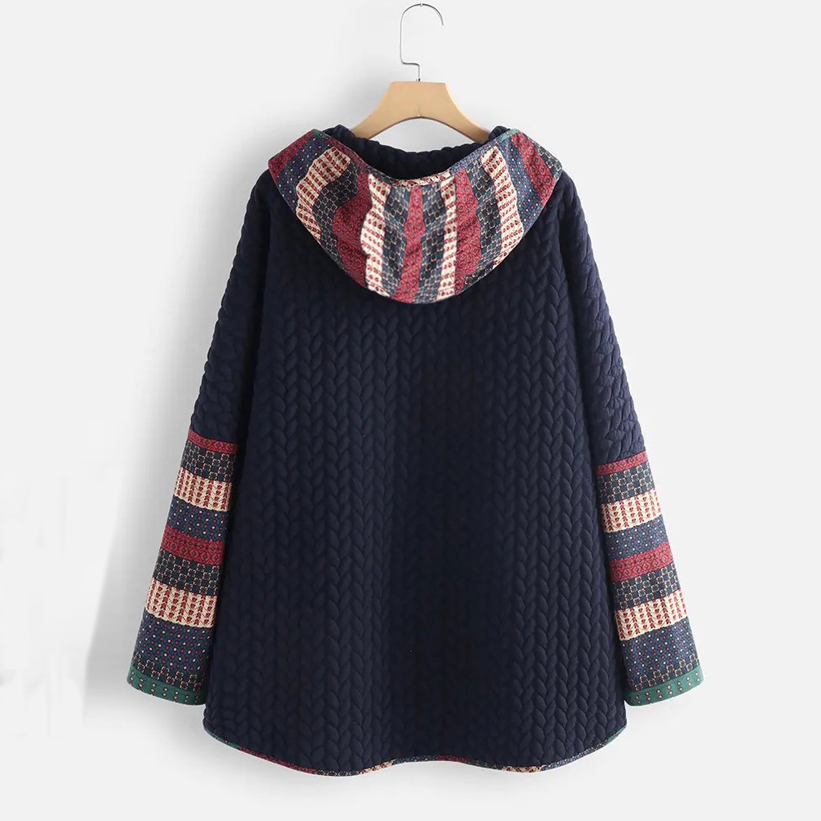 Женское теплое пальто с капюшоном и этническим принтом; Однобортная куртка с длинными рукавами