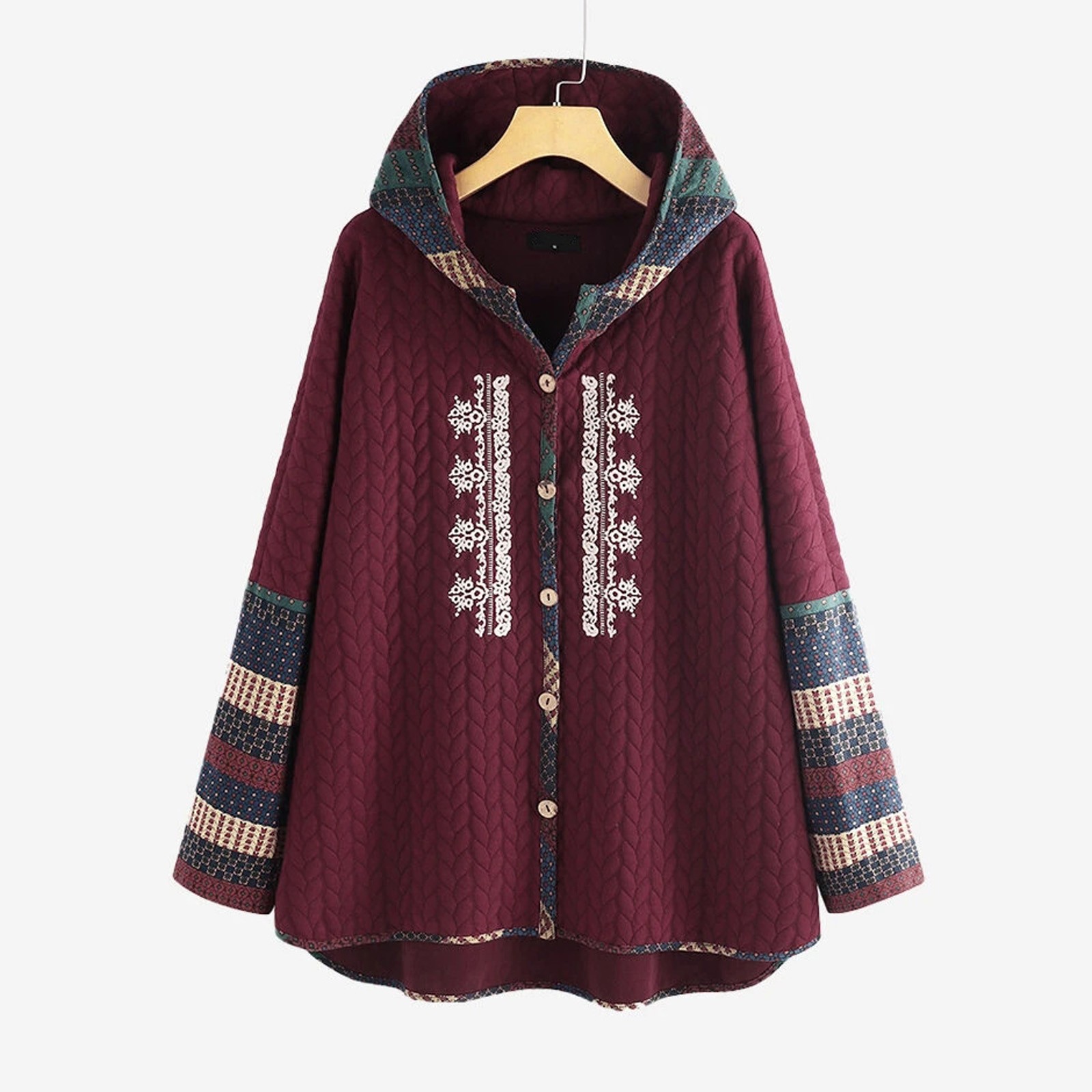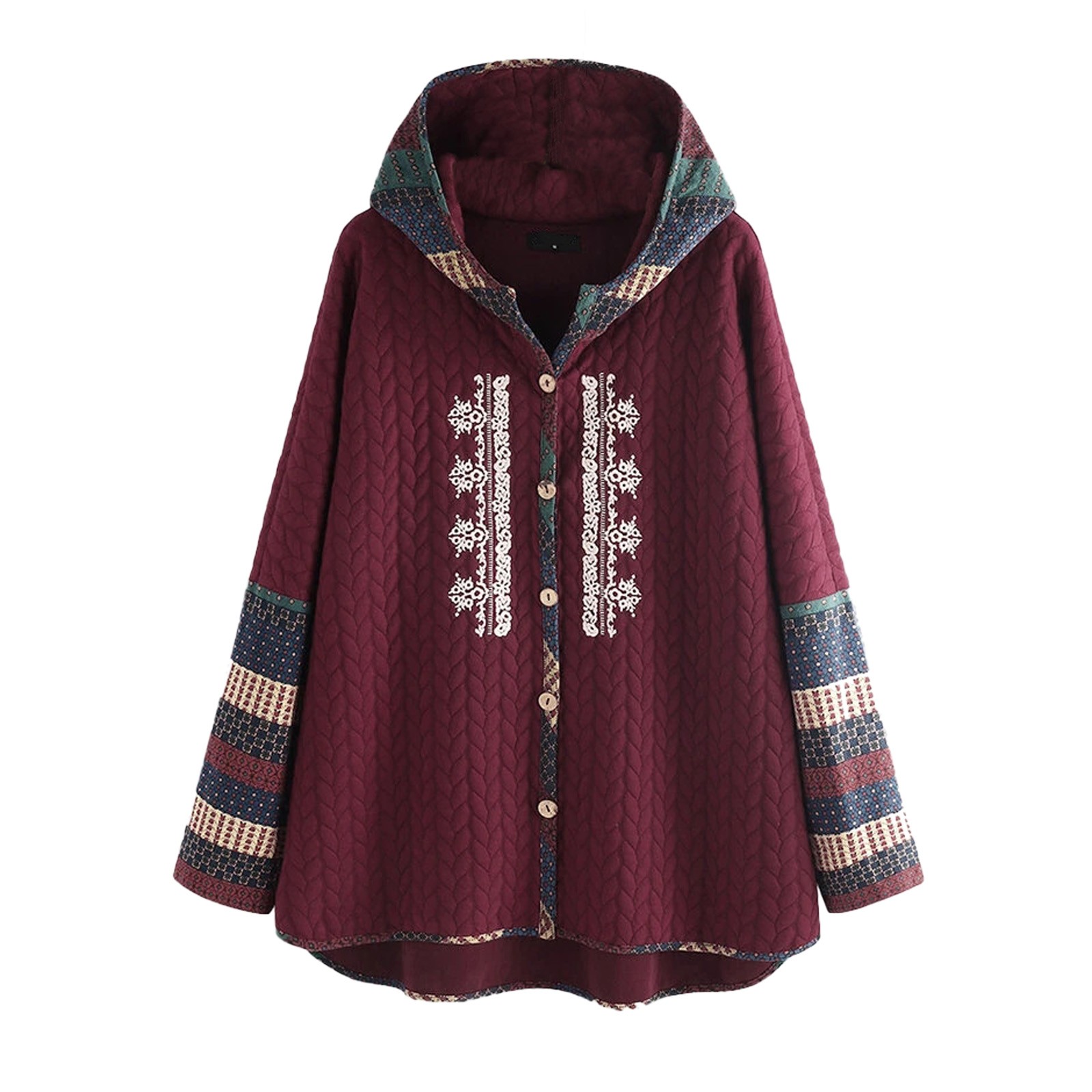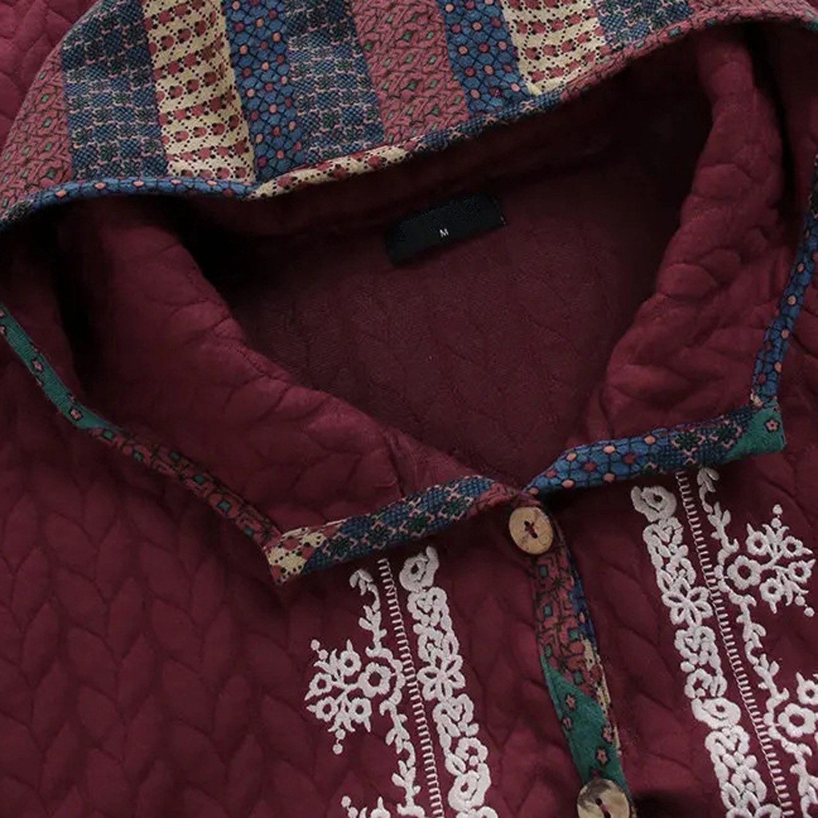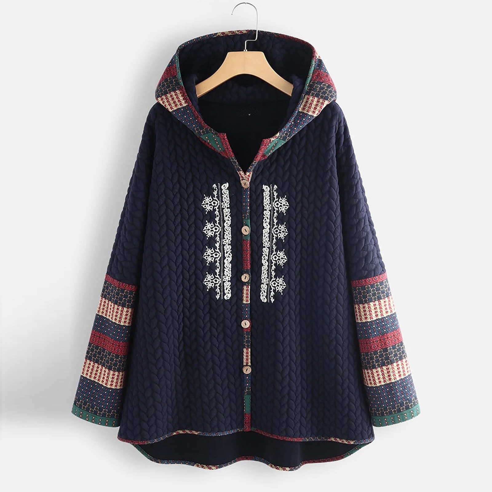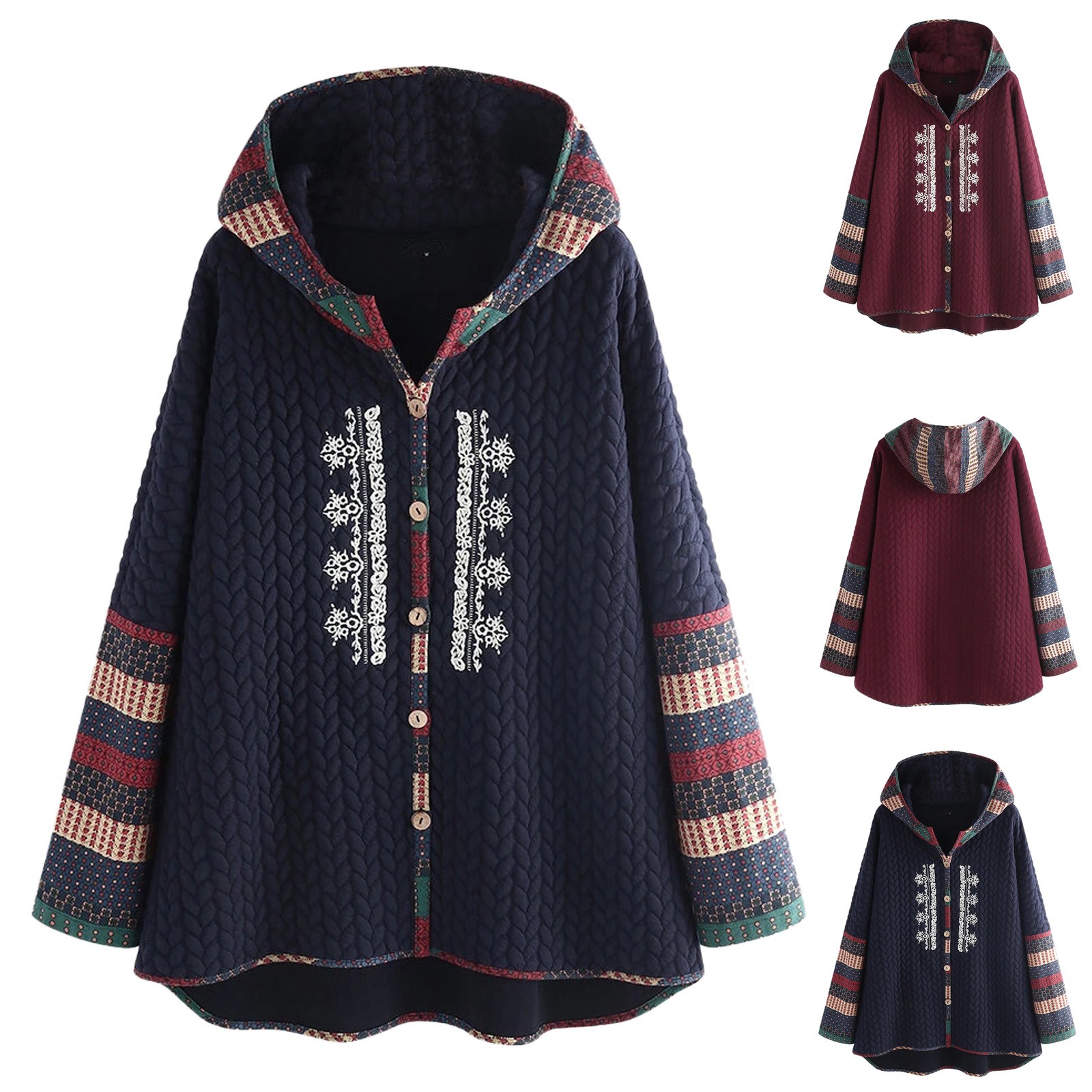 Женское теплое пальто с капюшоном и этническим принтом; Однобортная куртка с длинными рукавами