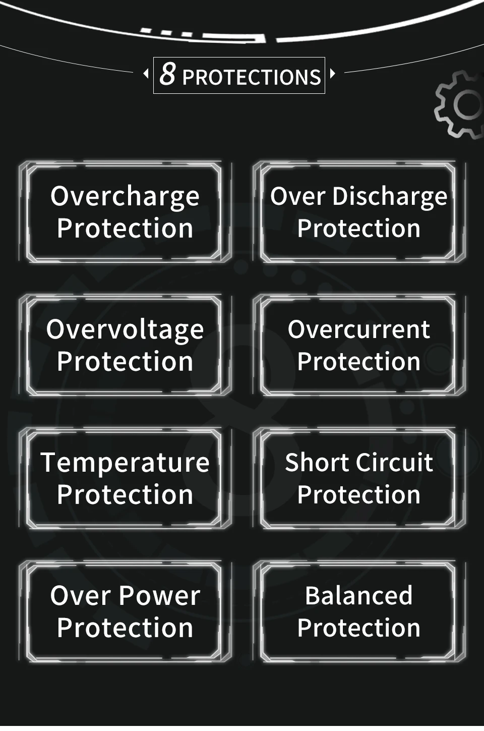 Наши батареи очень безопасны с 8 защитой от перезаряда, защита от перегрузки, защита от перенапряжения, защита от перегрузки по току, защита от температуры, защита от короткого замыкания, защита от перегрева, сбалансированная защита.