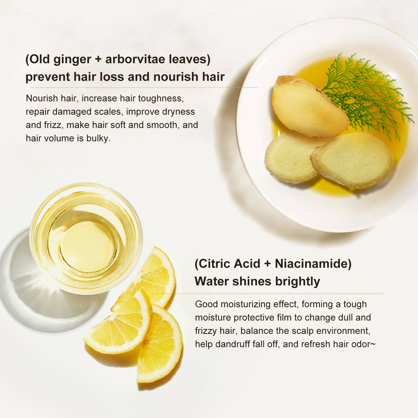 Шампунь для смягчения имбиря и питательный шампунь имеют двойной эффект, чтобы восстановить блеск и гладкость волос.