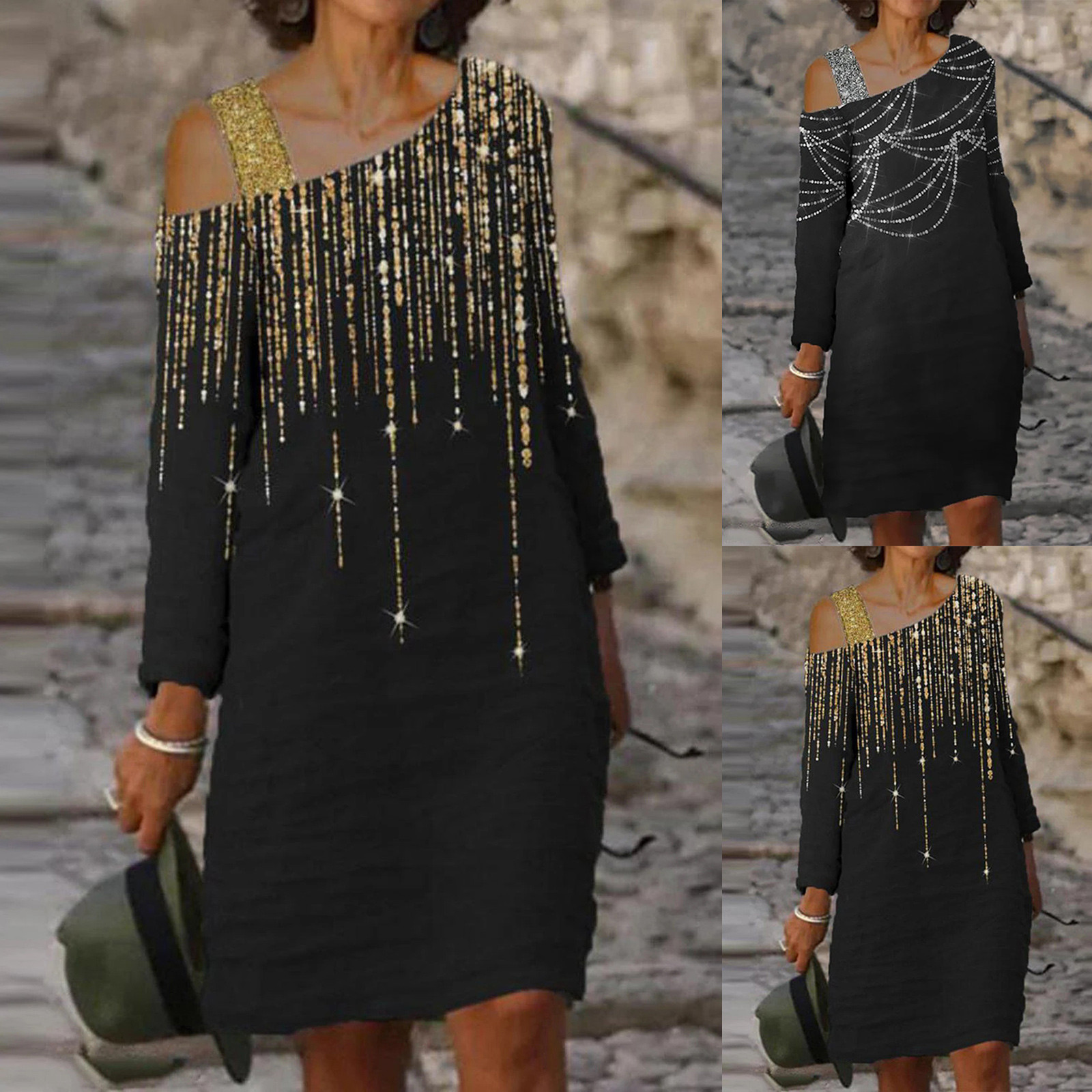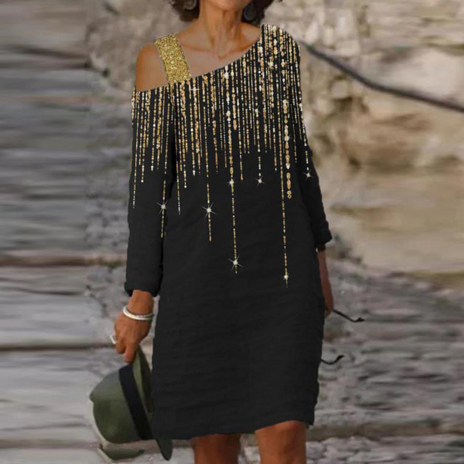 Женское повседневное свободное платье с длинным рукавом и принтом